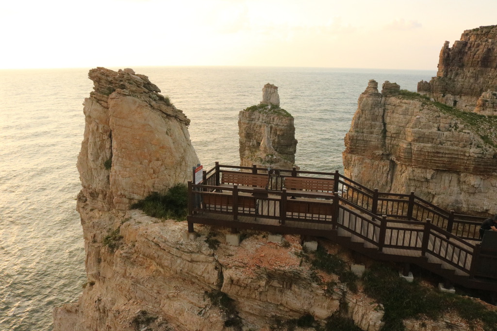 ▼ 해안산책로를 따라 10여분쯤 걷자 웅장한 해안(海岸) 절경(絶景)이 눈앞에 펼쳐진다. 백령도를 다녀온 사람들에게 백령도 제일의 절경을 꼽으라면, 너나 할 것 없이 첫손을 꼽는 곳이 두무진이라고 한다. 해안이 내려다보이는 언덕 위에 올라서면, 자기도 모르는 사이에 입을 벌리고 만다. 당연히 감탄사 한 마디라도 내뱉어야하건만 다들 조용하기만 하다. 빼어난 경관(景觀)에 취해 벌린 입을 다물 겨를이 없기 때문이다. 숱한 세월 동안 비바람에 마모(磨耗)되고 파도에 깎여나간 선대암, 코끼리바위, 장군바위, 형제바위 등 기기묘묘한 형상의 바위들이 길게 늘어서 있다. '서해의 해금강'이라고도 불릴 정도로 빼어난 풍광(風光)을 자랑하는 두무진 해안은 현재 국가문화재인 명승 제8호로 지정되어 있다.