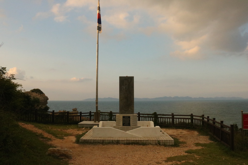 ▼ 두무진의 북쪽 끄트머리에 있는 통일기원비를 구경하면서 트레킹은 끝을 맺게 된다. 투어(tour)가 끝났지만 숙소가 있는 진촌으로 돌아가지 않고, 근처 두무진포구에 있는 생선 횟집에 자리를 잡는다. 백령도에서 싱싱한 회를 먹을 수 있는 곳은 두무진포구가 유일하기 때문이란다. 4명이 둘러앉게 되는 상차림은 10만원. 회는 넉넉하진 않지만 그렇다고 부족하지도 않다. 여기에 매운탕에 밥까지 제공되니 1인당 2만5천이 비싸다곤 할 수 없겠다.