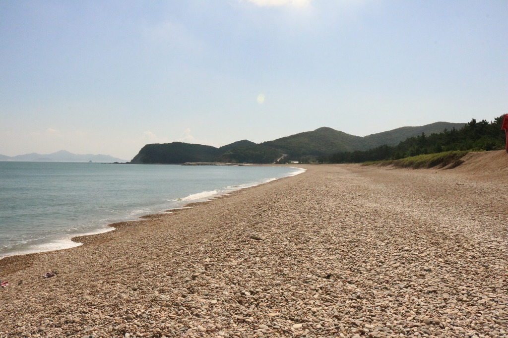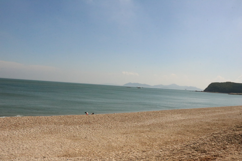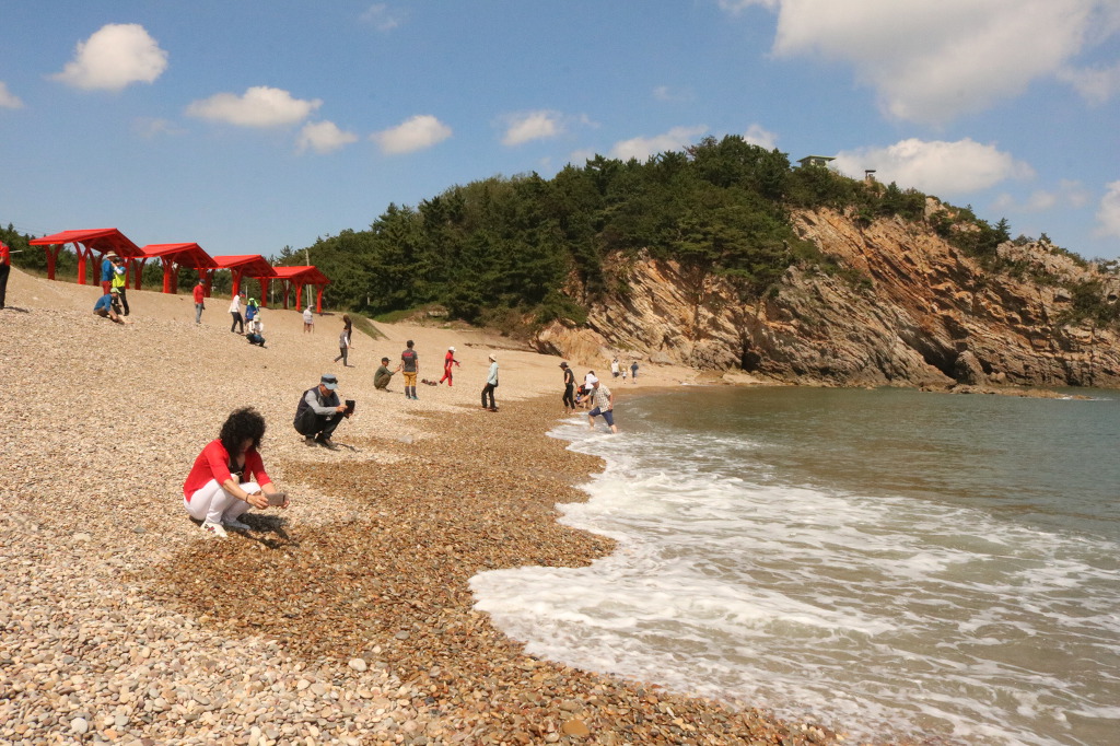 ▼ 세 번째로 찾은 곳은 콩돌해안(海岸 : 천연기념물 제392호)이다. 두무진 해안의 반대편 해안에 위치한 콩돌해변(海邊)도 백령도가 아니면 찾아볼 수 없는 진풍경이다. 길이 1㎞가량의 해변 전체가 콩처럼 자잘한 돌로 가득하다. 돌의 크기와 모양이 진짜 콩과 구별하기 어려울 정도. 하긴 얼마나 콩과 닮았으면 이름까지도 콩돌이라고 지었겠는가. 이 콩돌들은 백령도에 흔하게 분포된 규암이 억겁(億劫)의 세월동안 파도에 깎이고 씻겨 지면서 만들어 낸 모양이란다. 돌의 색깔도 매우 다채롭다. 보는 사람들마다 조금씩 다르겠지만 보통은 흰색, 갈색, 회색, 적갈색, 청회색, 청록색 등이라고 말하고 있다. 참! 콩돌을 가지고 나가면 안 된다는 것을 깜빡 잊을 뻔했다. 관광안내소에서 경고성 안내방송까지 들려주는 것을 보면 몰래 숨겨나가는 사람들이 꽤 있는 모양이다.