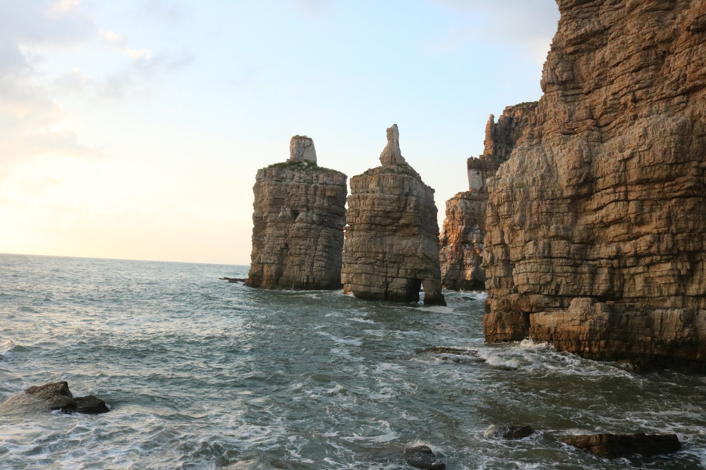 ▼ 바닷가로 내려서면 감탄사가 절로 터져 나올 만큼 웅장한 해안절경(海岸絶景)이 눈앞에 펼쳐진다. 숱한 세월 동안 비바람에 마모(磨耗)되고 파도에 깎여 나간 기기묘묘(奇奇妙妙)한 형상의 바위들이 수도 없이 늘어서 있다. ‘마치 대군(大軍)을 호령하는 장수처럼 위풍당당하다.’는 표현이 증명이라도 하려는 듯이 수많은 기암(奇巖)들이 우뚝 솟아오르고, 깎아지른 암벽(巖壁)은 병풍(屛風)처럼 늘어서 있다. ‘서해의 해금강’이라는 수식어(修飾語)가 결코 어색하지 않은 절경인 것이다.