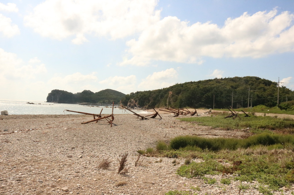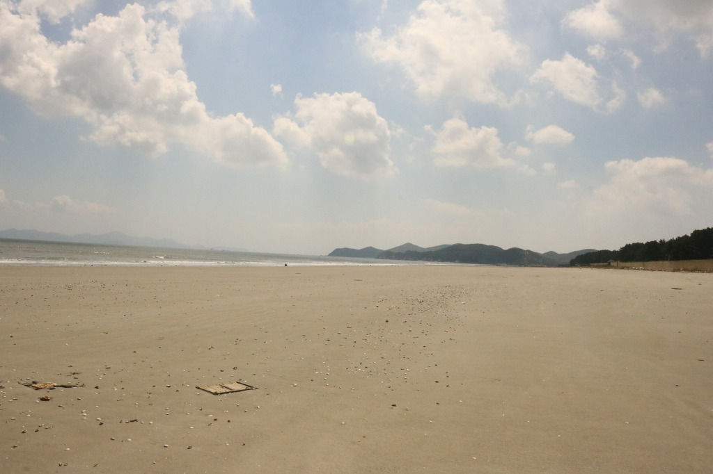 ▼ 점심을 먹자마자 곧바로 사곶해수욕장으로 이동한다. 백령도에 있는 관광자원(觀光資源)과의 첫 만남이다. 200m 폭의 모래사장이 2㎞에 걸쳐 펼쳐지는 이곳 ‘사곶해수욕장’은 1997년 천연기념물(제391호)로 지정된바 있다. 이탈리아의 나폴리와 함께 세계에서 2곳 밖에 없다는 특수성 때문이란다. ‘사상누각’(모래 위에 지은 집)이라는 표현에서 잘 나타나듯 모래밭은 단단함이나 견고함과는 정반대인 곳이다. 하지만 이곳 ‘사곶사빈’은 바닥이 단단하기 그지없다. ‘천연비행장’이라고도 불리우 듯 실제로 한국전쟁 이후 군용 비행기 활주로로 쓰이기도 했단다. 두껍게 쌓여 있는 미세한 석영질 모래층이 무거운 비행기가 내려앉아도 꺼지지 않을 만큼 치밀하고 단단하기 때문이란다. 저 모래사장은 가끔 해병대원들의 ‘극기 훈련장’으로 활용되곤 한단다. 그래서 군인들이 훈련하는 모습을 심심찮게 볼 수 있다지만, 오늘은 해변(海邊)이 텅 비어있다. 그런 눈요깃거리를 보는 행운(幸運)은 아무에게나 제공되지는 않나보다.