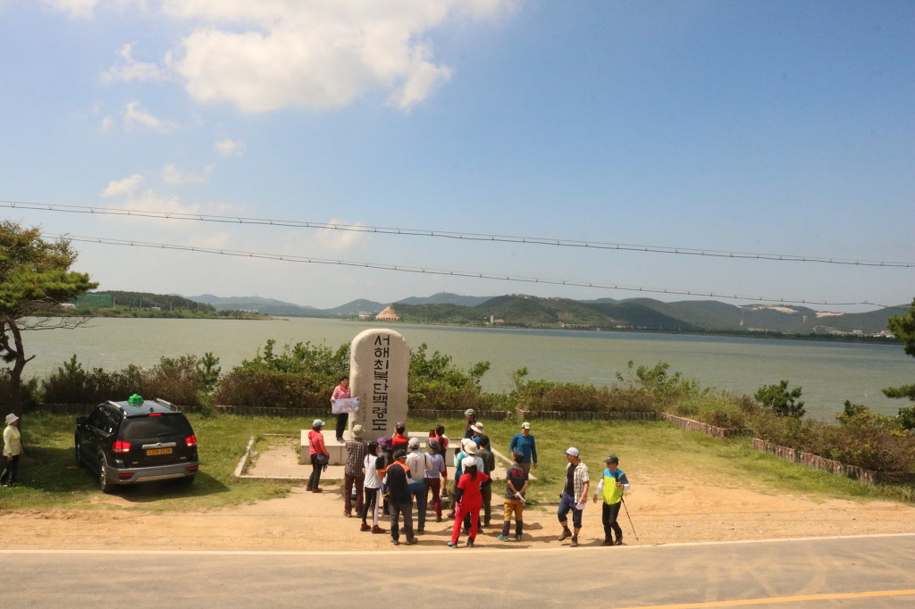 ▼ 두 번째 방문지는 ‘백령호’이다. 20년쯤 전에 있었던 간척사업 때 생겨난 담수호(淡水湖, freshwater lake)인데, 블랙야크에서 원하는 인증물이 이곳에 위치하고 있기 때문이다. ‘서해 최북단 백령도’라고 쓰인 거대한 이 비석은 호수의 제방(堤防)에 세워져 있다. 길이가 870m쯤 되는 저 제방으로 인해 백령도는 우리나라에서 8번째로 큰 섬이 되었단다. 당초는 14번째였다니 당시의 공사가 얼마나 컸을지 미루어 짐작할 수 있을 것이다. 91년부터 99년까지 계속된 공사는 350ha의 농경지를 만들어냈고, 그때 함께 생긴 것이 바로 백령호(白翎湖)인데, 호수(湖水)의 넓이가 무려 129ha나 된다. 섬의 모양이 ㄷ자에서 ㅁ자로 바뀔 정도로 거대한 공사였지만, 아쉽게도 담수(潭水)된 물은 아직까지도 농업용수(農業用水)로 활용하지를 못한다고 한다. 호수로 짠물이 유입되는 탓에 제 구실을 못하고 있다는 것이다. 참! 제방의 한쪽 귀퉁이에 백령대교가 놓여있다는 것을 깜빡 잊을 뻔했다. 길이가 50m도 채 되지 않는 꼬맹이 다리인데도 이곳 주민들은 ‘대교(大橋)’라고 부르는 것을 서슴치 않는단다. 백령도에서 가장 긴 다리이기 때문이란다.