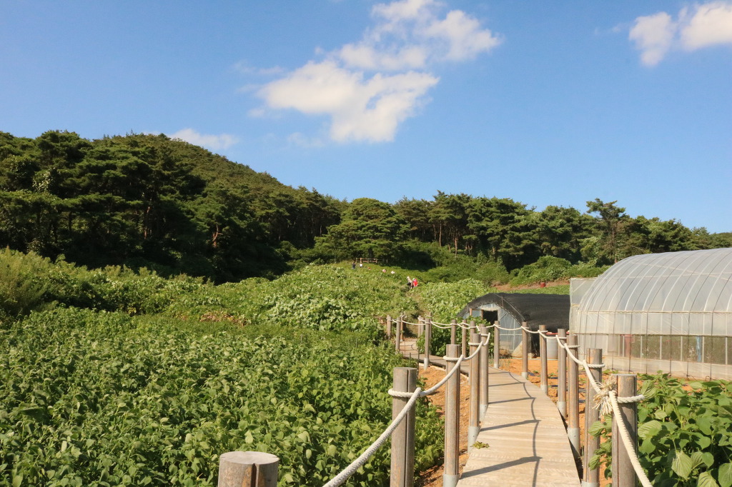 ▼ 축복의 땅이지만 아쉬운 점도 눈에 띄었다. 교회로 올라가는 계단 옆에 있던 커다란 무궁화나무가 뼈대만 앙상한 고사목(枯死木)으로 변해있었기 때문이다. 천연기념물(제521호)로까지 지정되었을 정도로 나이 먹은 나무였는데 안타까운 일이라 하겠다. 안내판에는 태풍의 피해로 고사했다고 적혀있었으나 가이드는 관리부실이 원인이라며 강하게 반발하고 있었다.