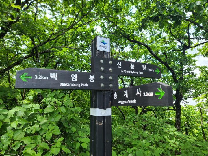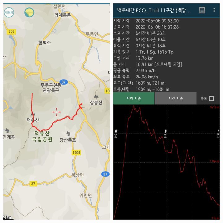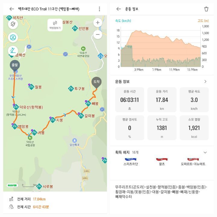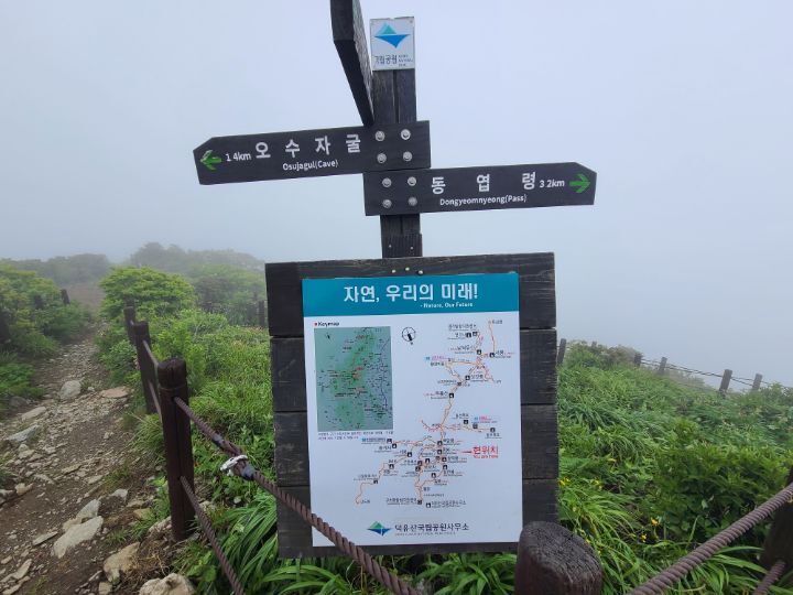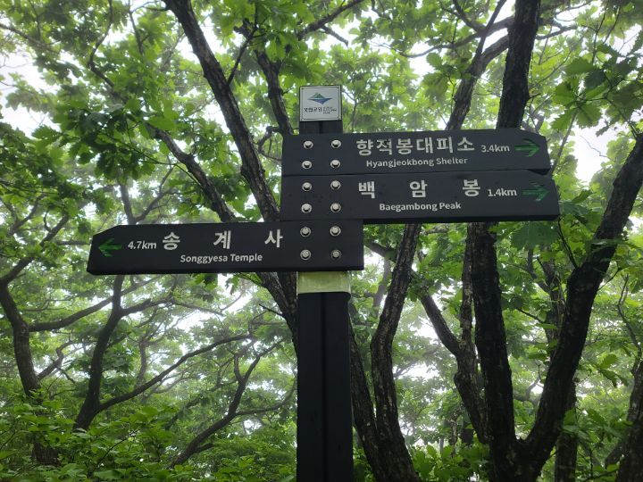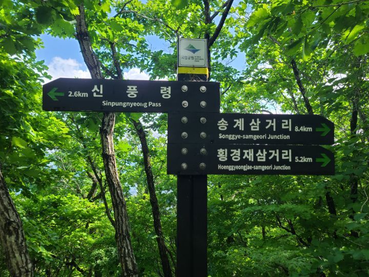 무주리조트(곤도라)-설천봉-향적봉(인증)-중봉-백암봉(인증)-횡경재-지봉/못봉(인증)-대봉-갈미봉-빼봉-빼재/신풍령-빼재약수터 (약 14.2km/7시간)