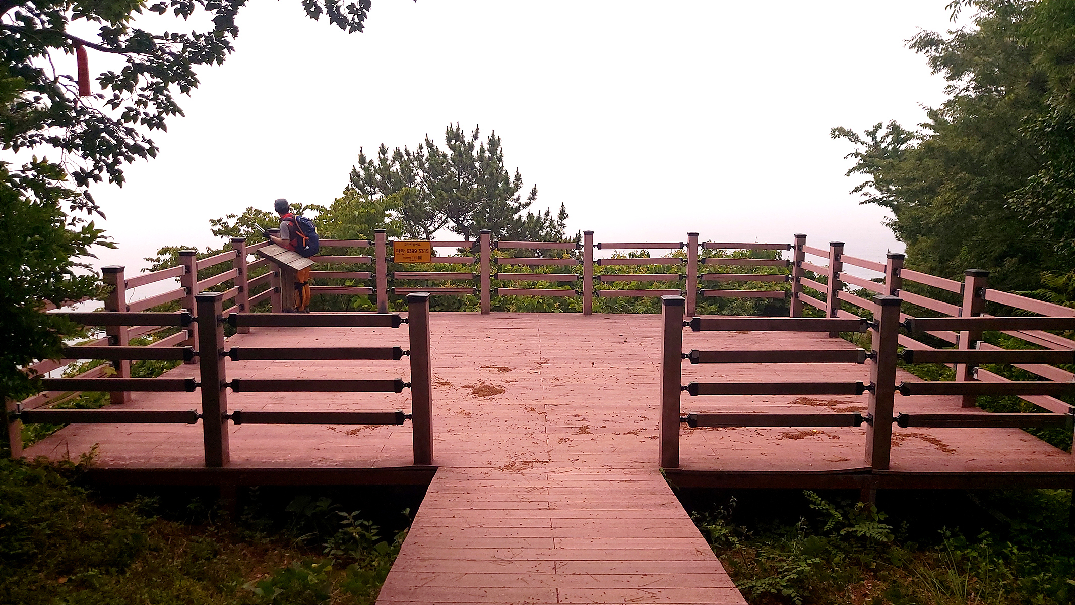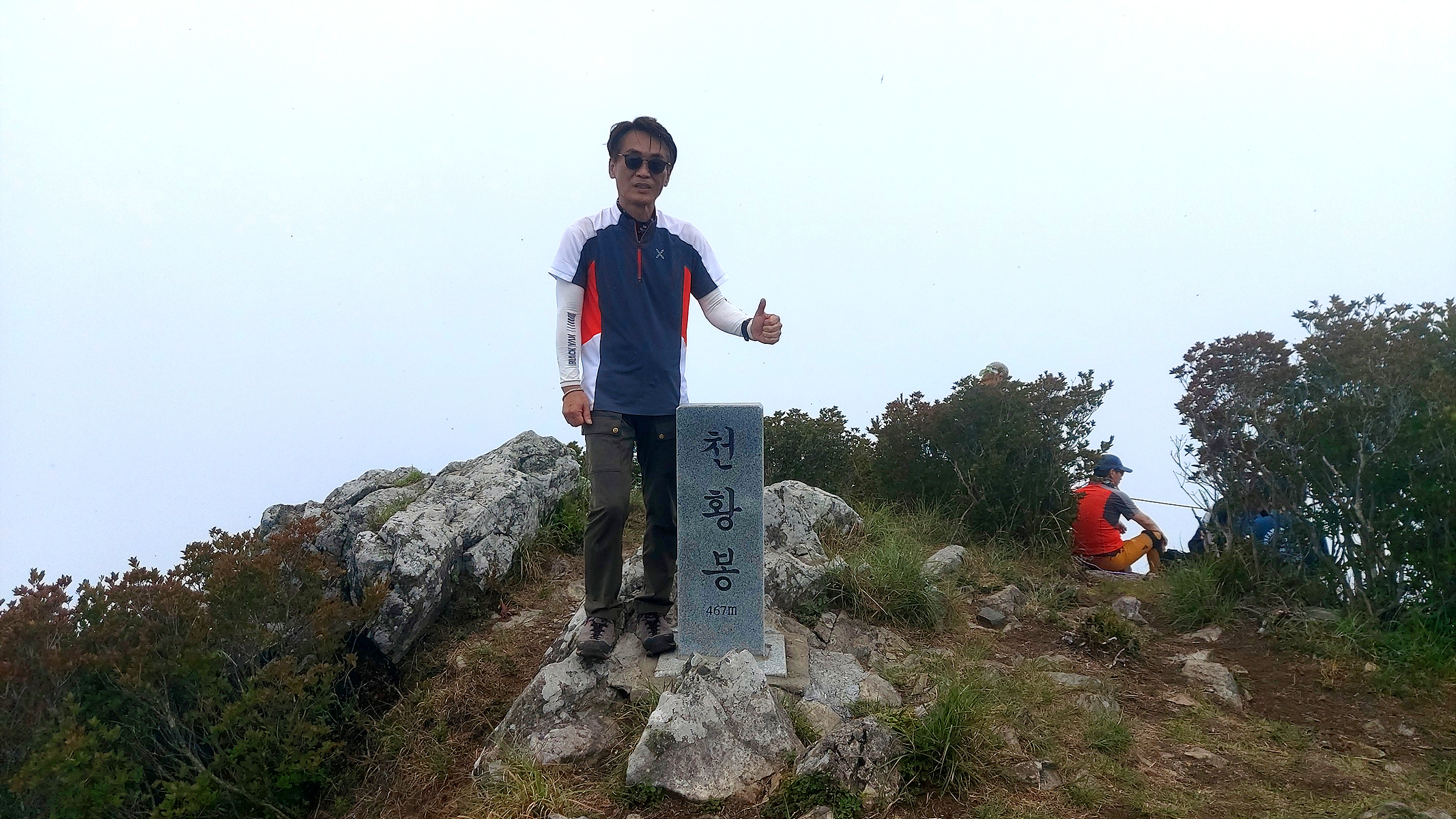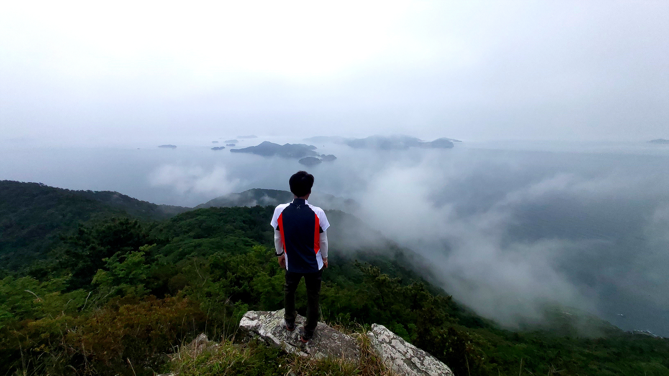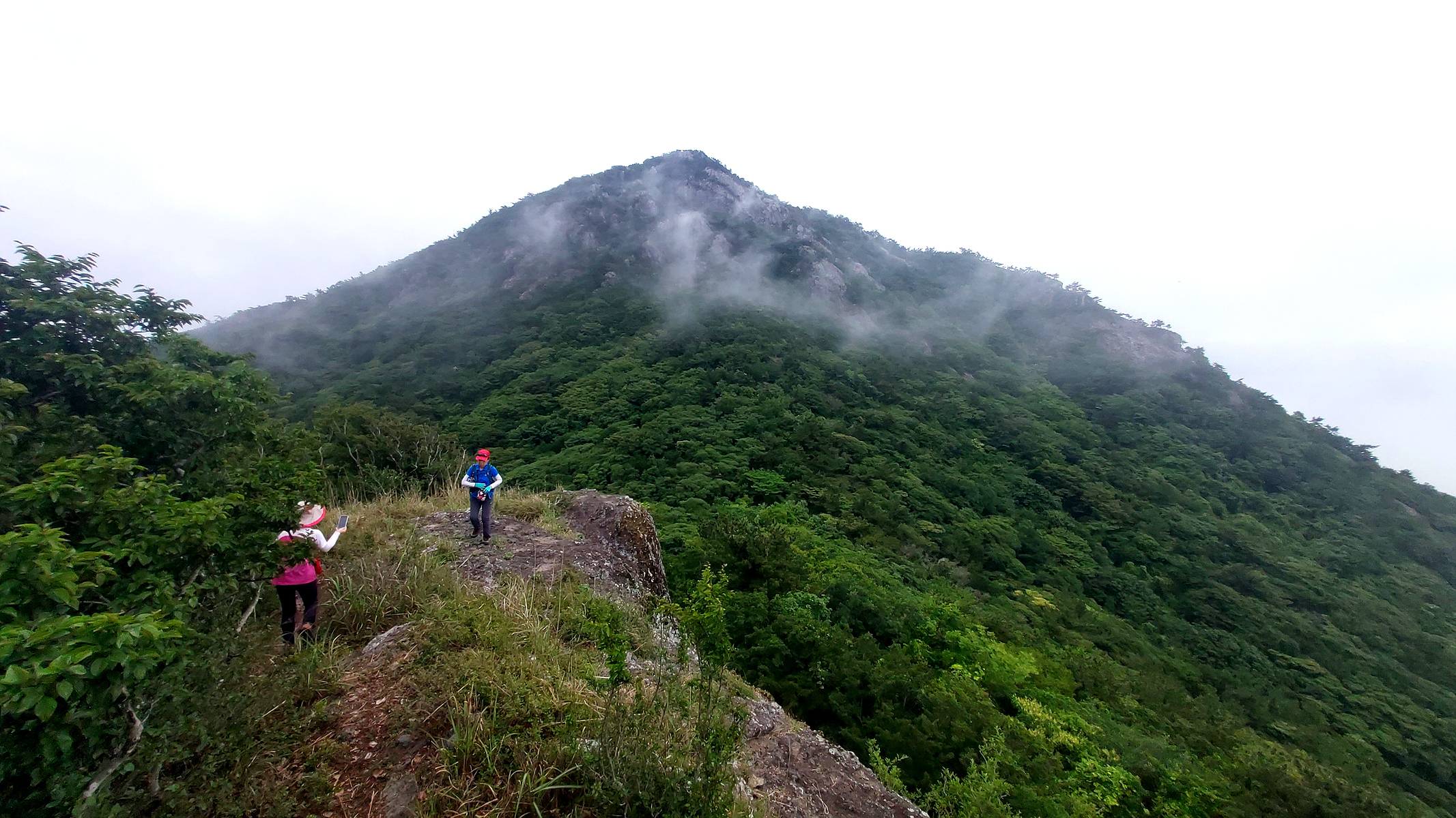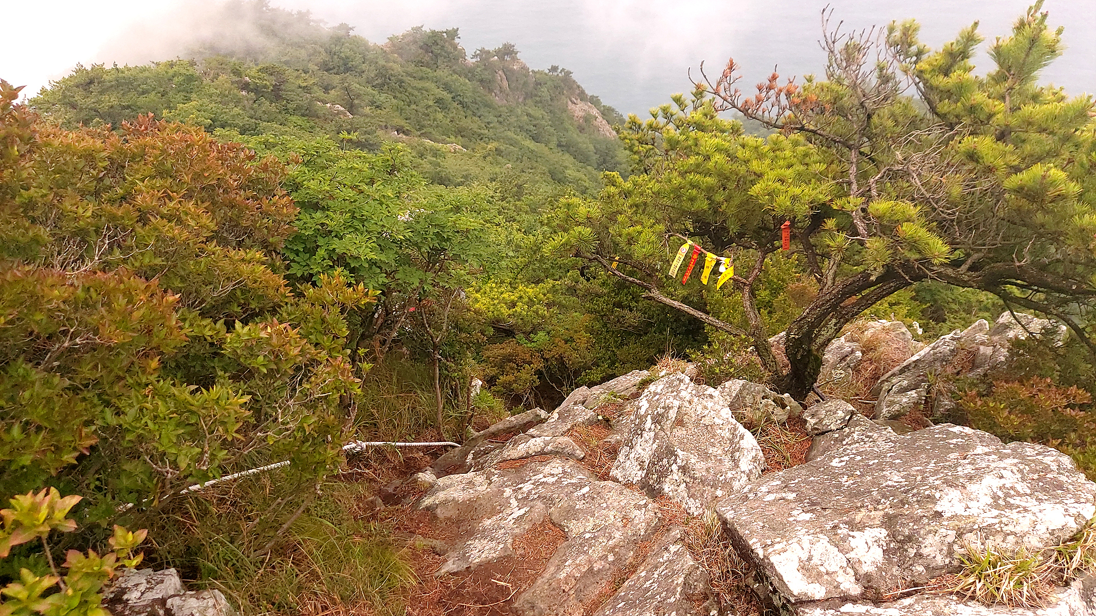 해무가 바람에 밀려 천황산의 모습이 살짝 보인다