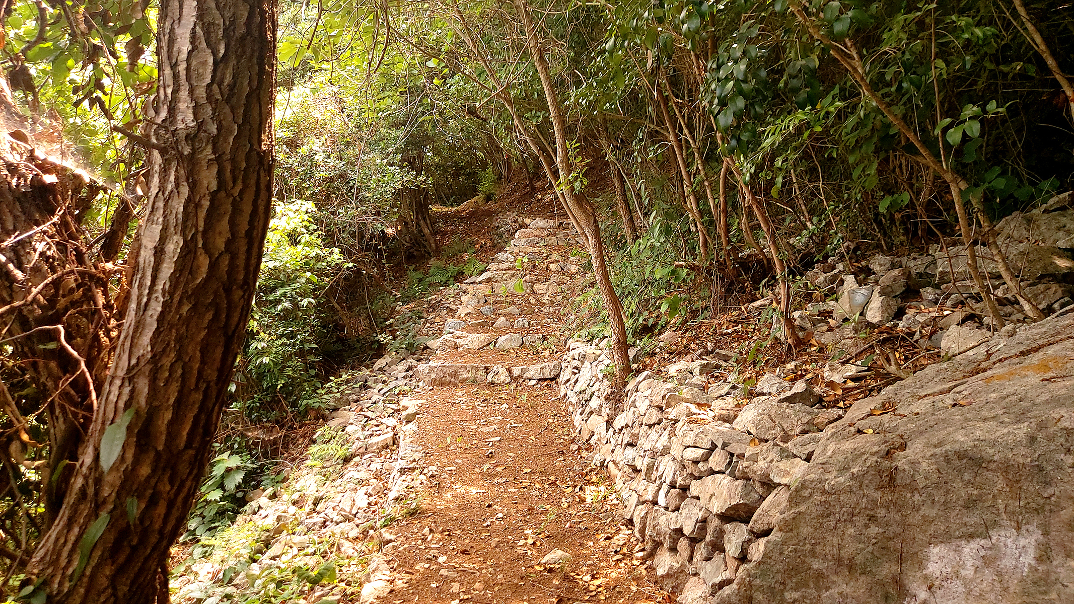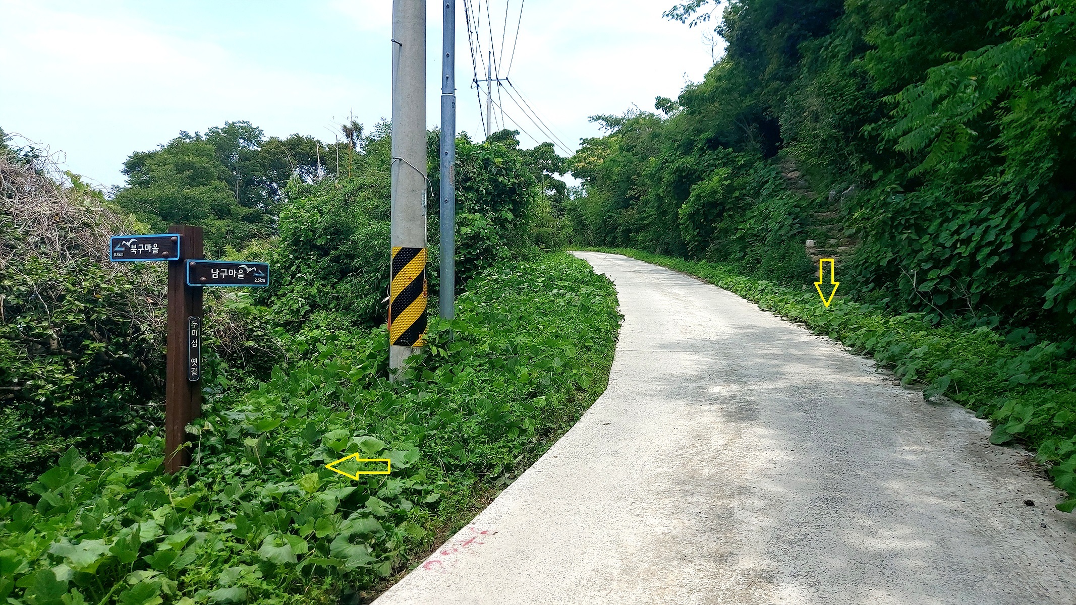 두미섬 옛길은 포장길 위 아래로 엇갈려 가며 북구마을까지 이어진다