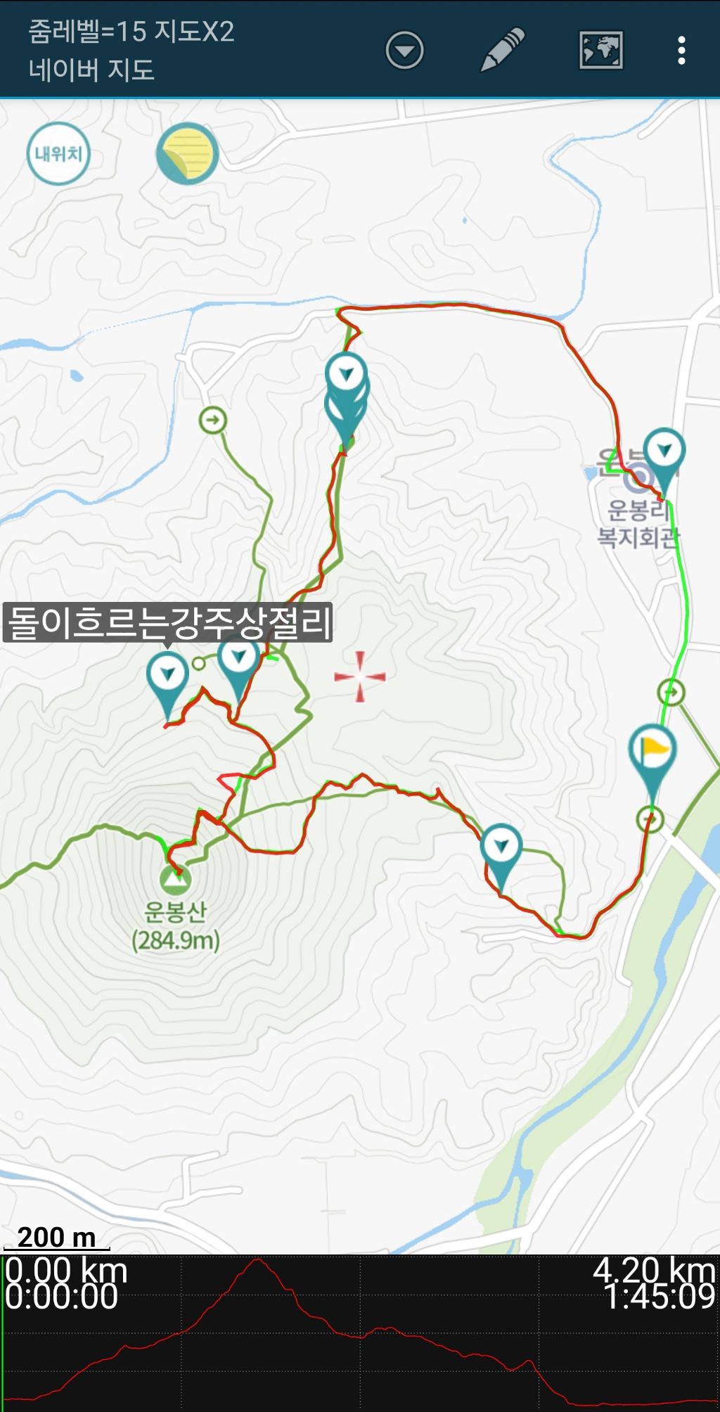 운봉교 나홀로소나무 말안장바위 정상왕복 돌이흐르는강 주상절리너덜바위 샘터 남근바위 머리바위 마오이석상바위 주먹바위 거북바위 운봉리숭모공원