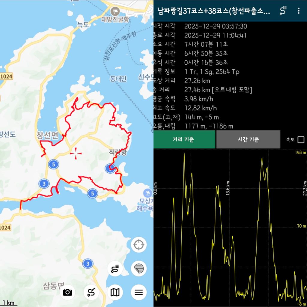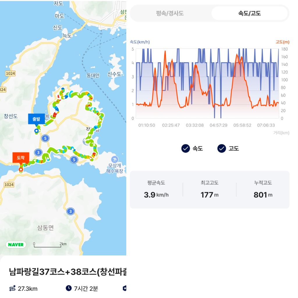 ㅇ04:00~13:00 : 남파랑길 37+38코스 트레킹