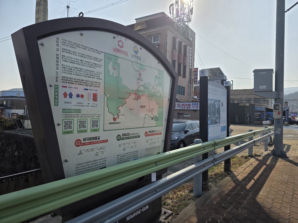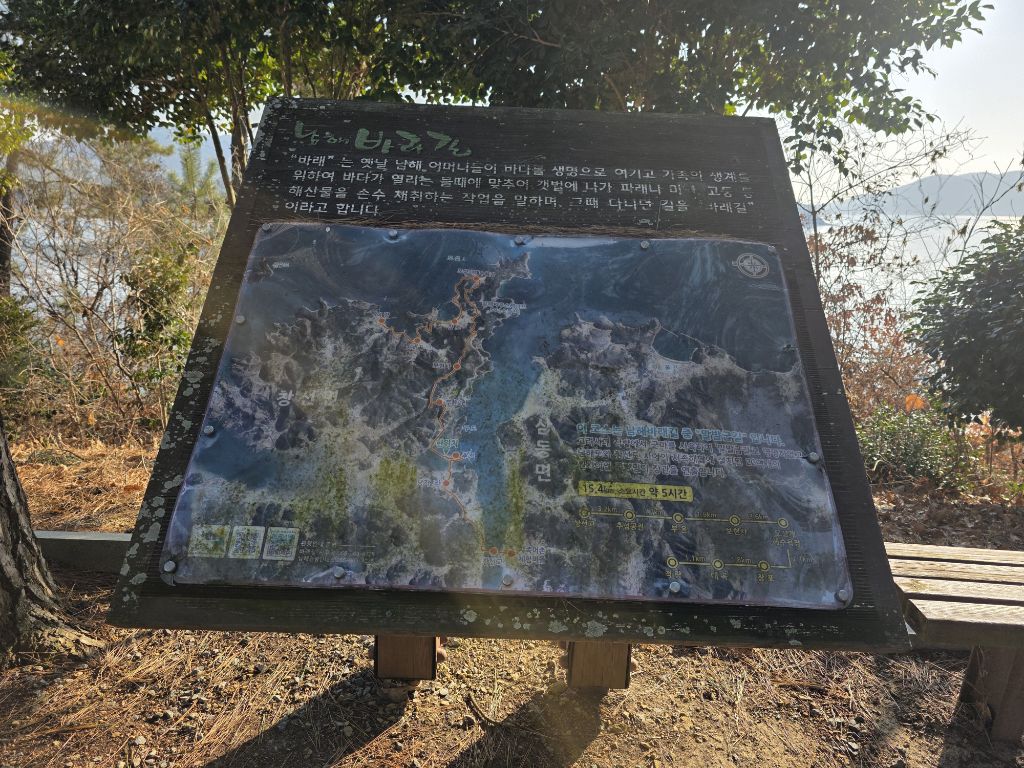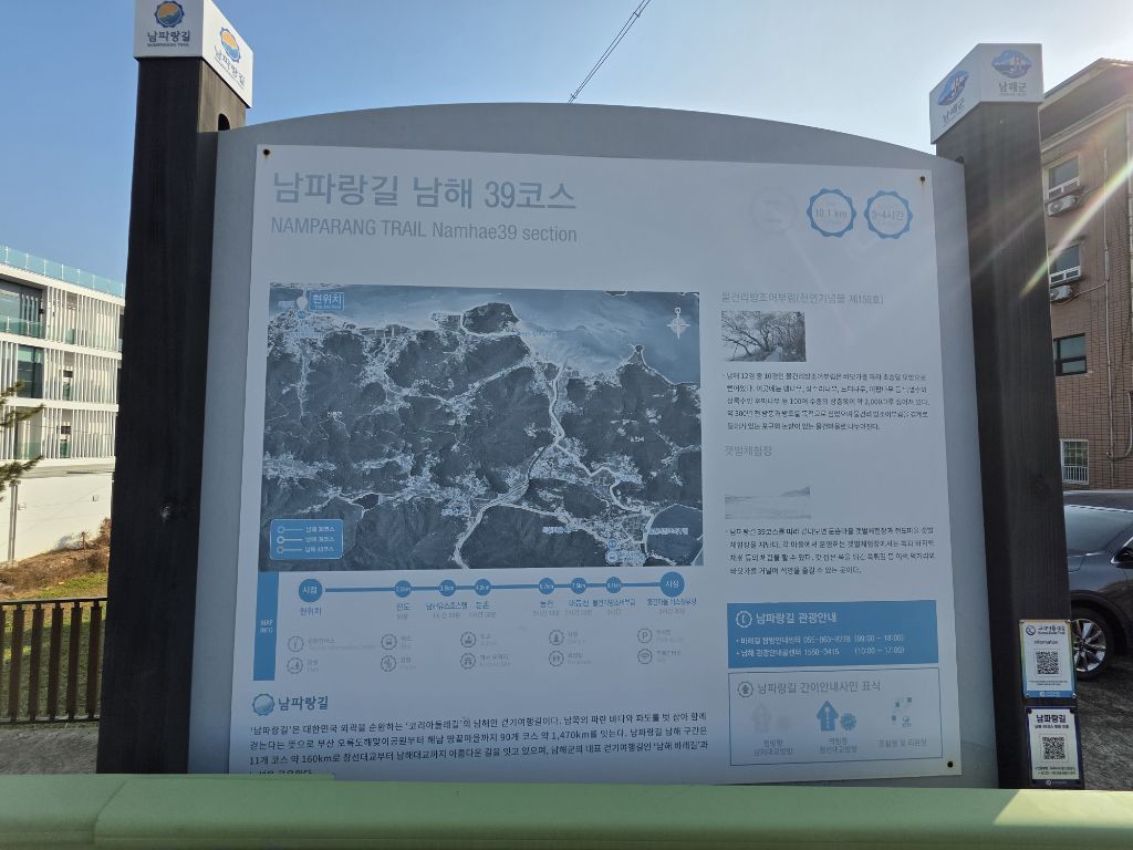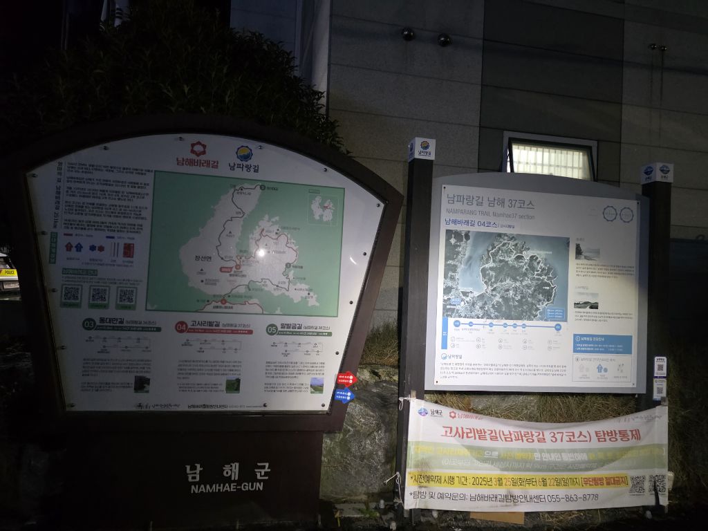 남파랑길 37+38코스 : 창선파출소-가인-천포-적량버스정류장(37코스 종점/38코스 시점)-장포-보현사-추섬공원-지족교-지족리하나로마트(창선교)(27.4km/9시간)