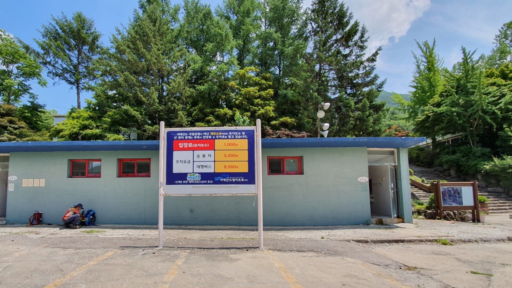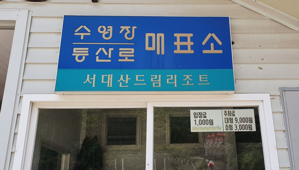 주차장에서 서대산으로 가려면 개인 땅이라는 이유로 주차료와는 별도로 1,000원의 입장료를 받습니다