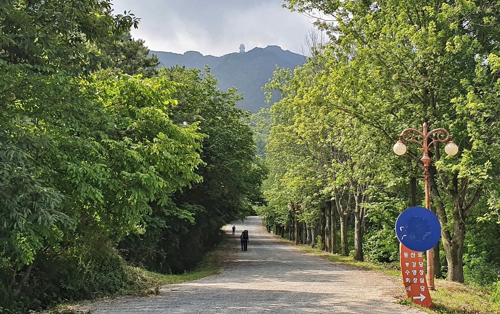 드림리조트를 걸어갈 때 능선위에 보이는 서대산 강우레이더관측소