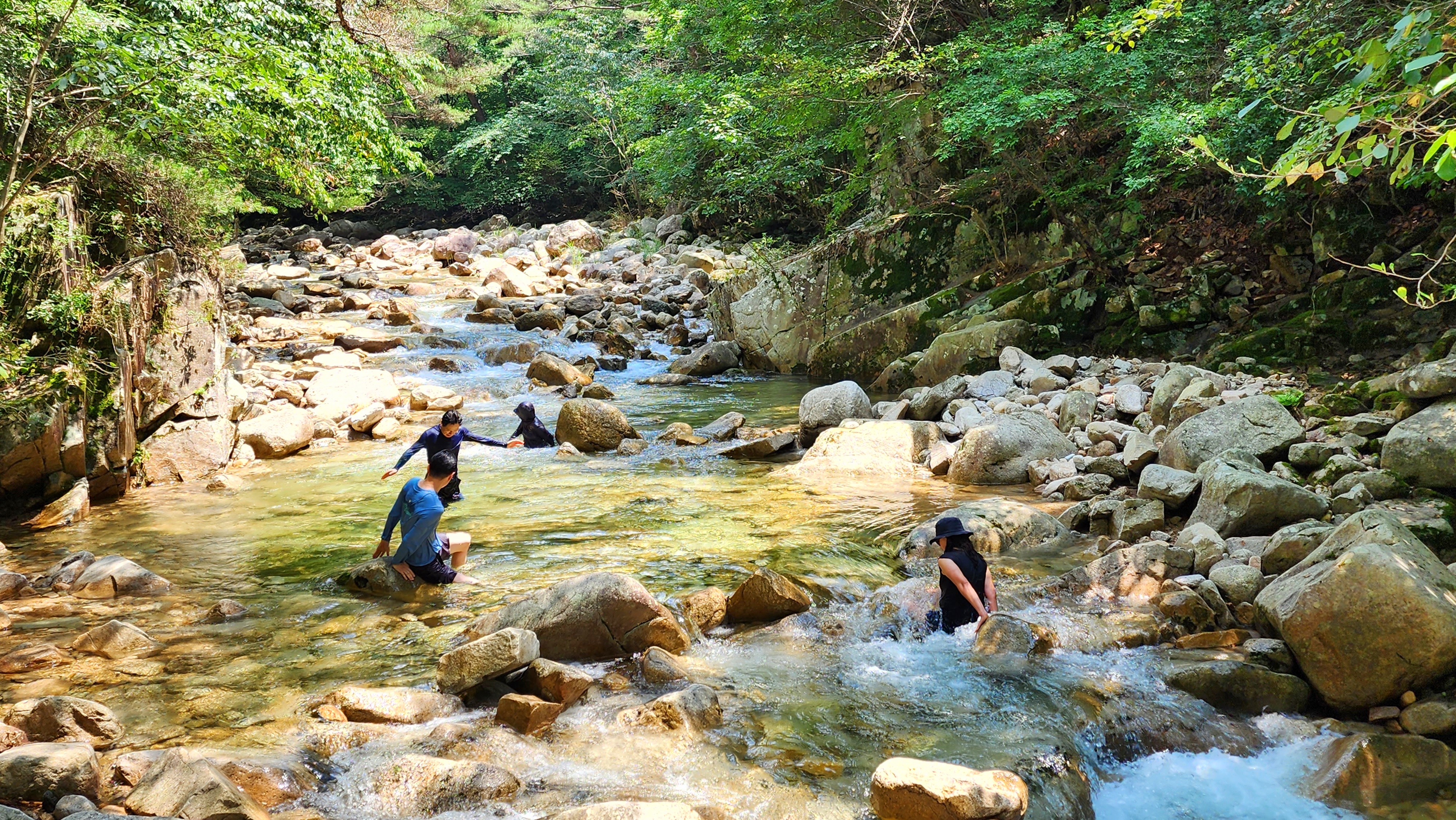 맑은 물이 흐르는 계곡은 기암절벽과 노송이 어우러져