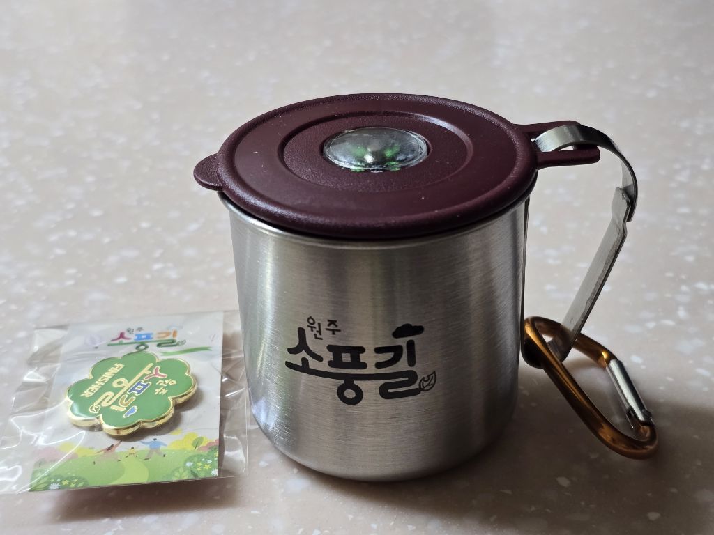 완보인증서와 기념뱃지 그리고 기념품으로 컵도 받아왔네요.