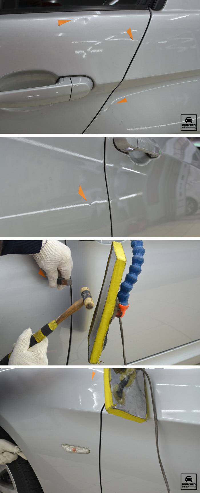 ▲ 광택시공에 앞서, 곳곳에 있는 문콕을 발견하여 덴트복원 작업을 합니다. 광택 후 훨씬 더 좋은 퀄리티를 얻을 수 있는 꼭 필요한 과정이기도 하죠.