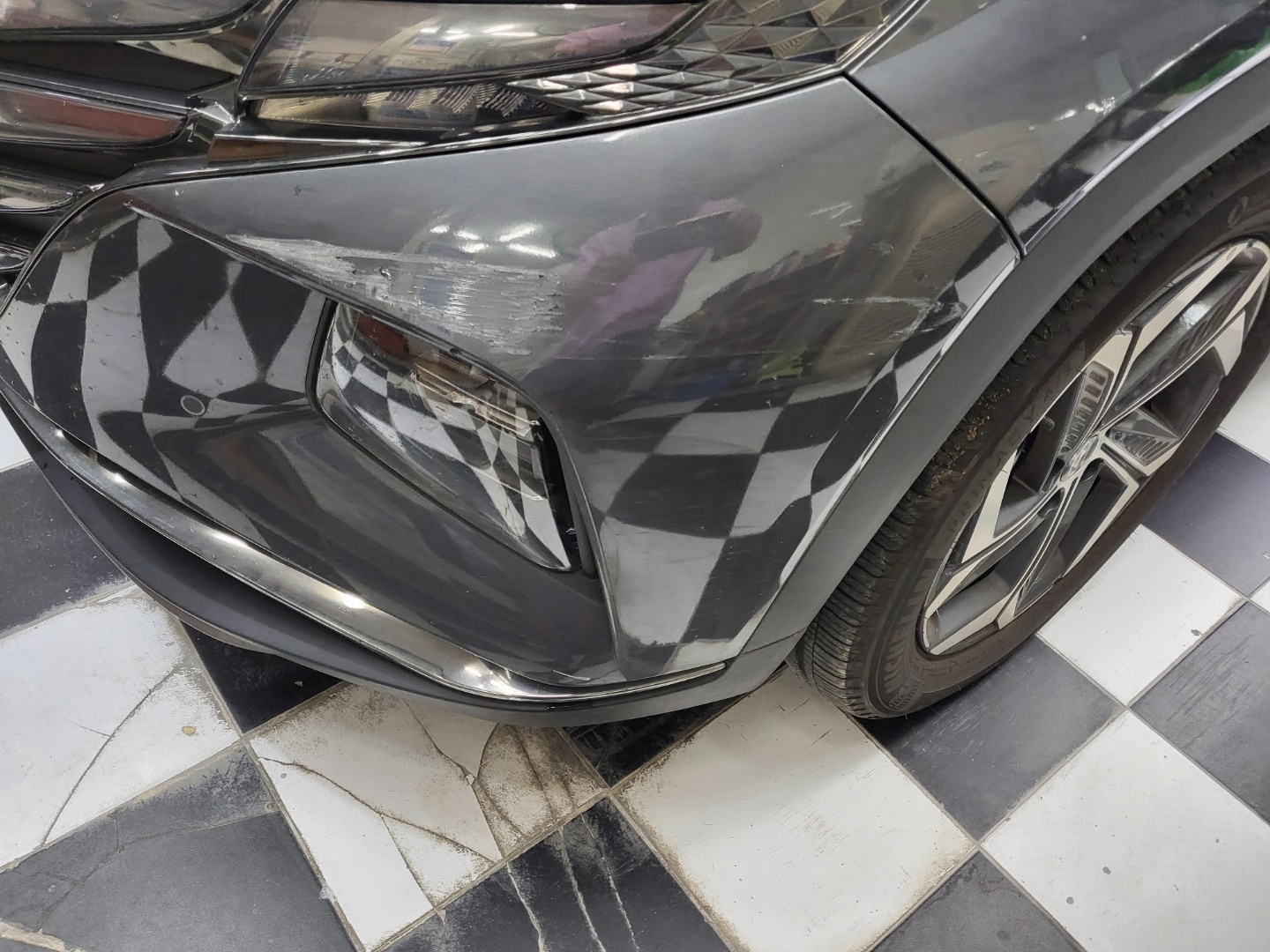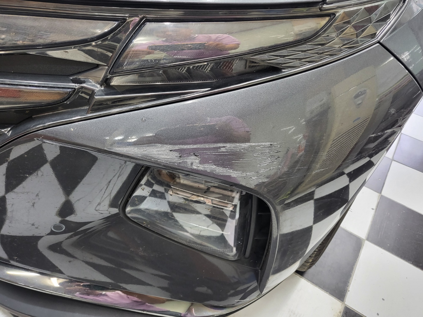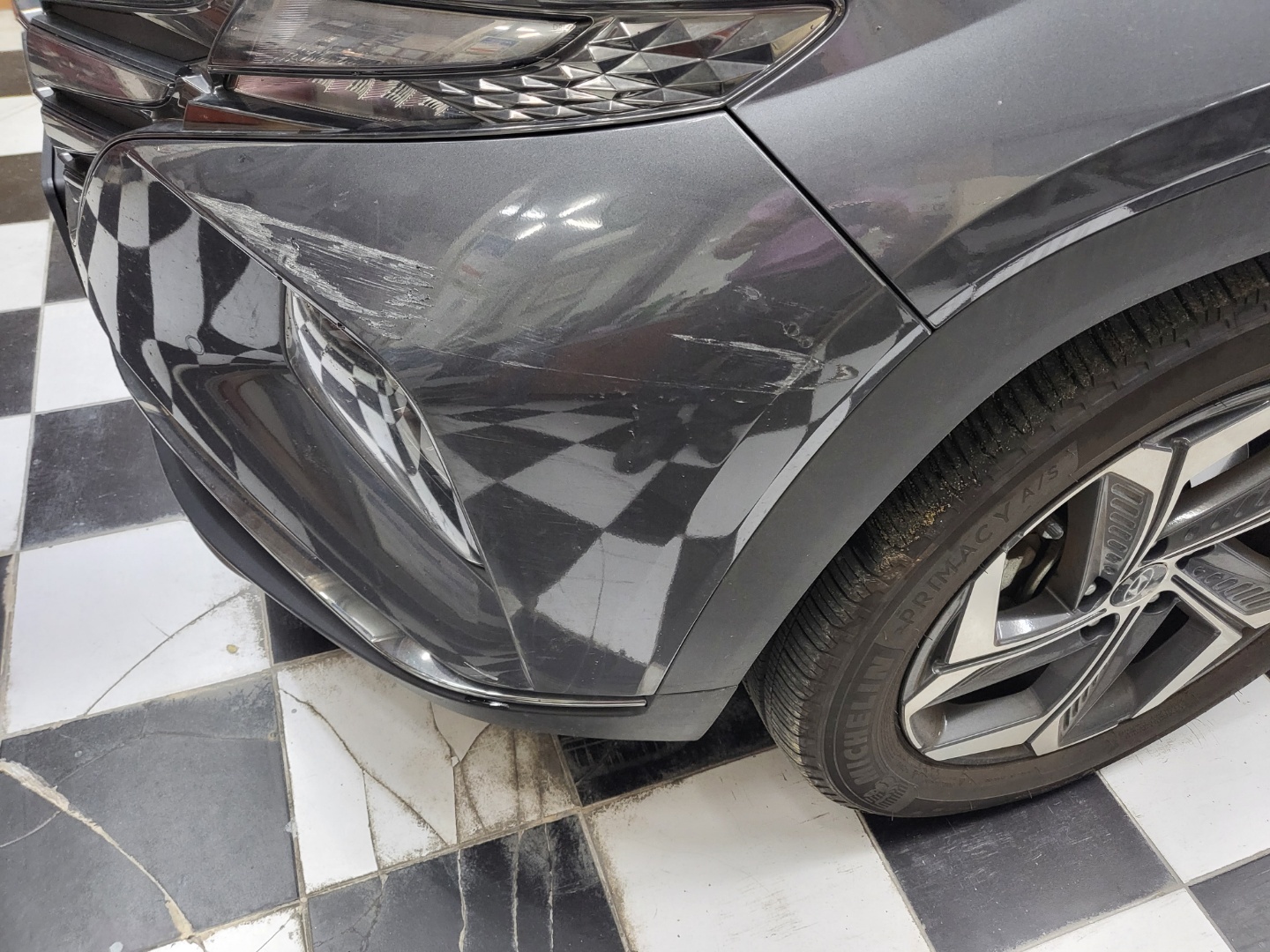 운전석 앞범퍼에 흠집이 생겨