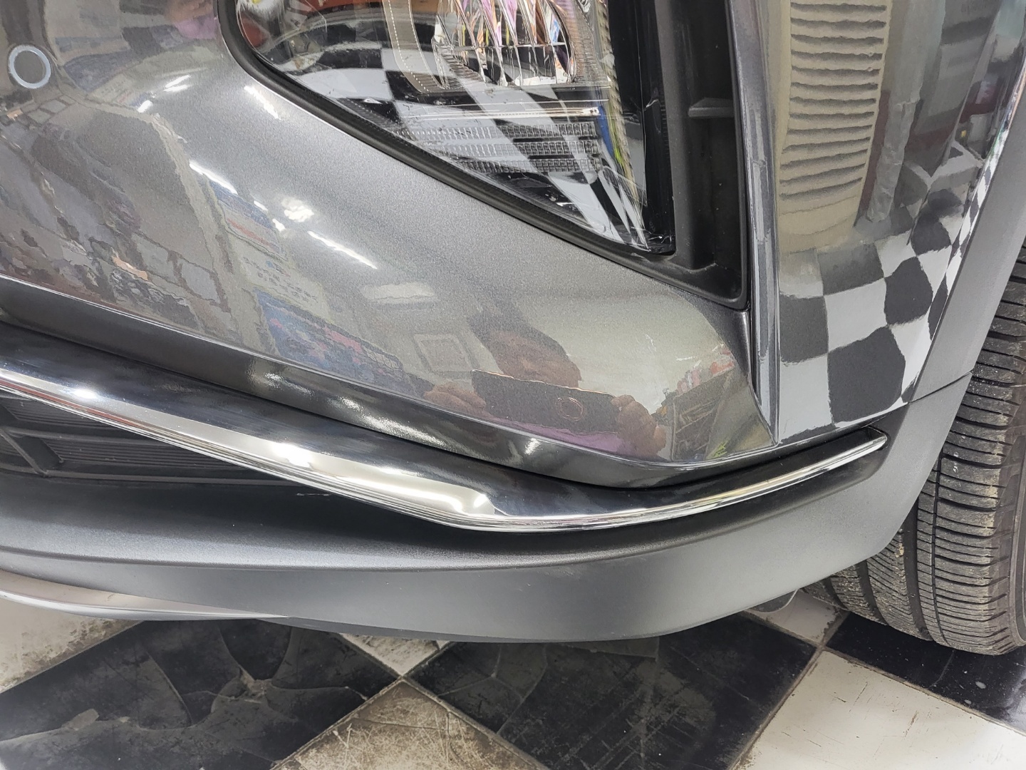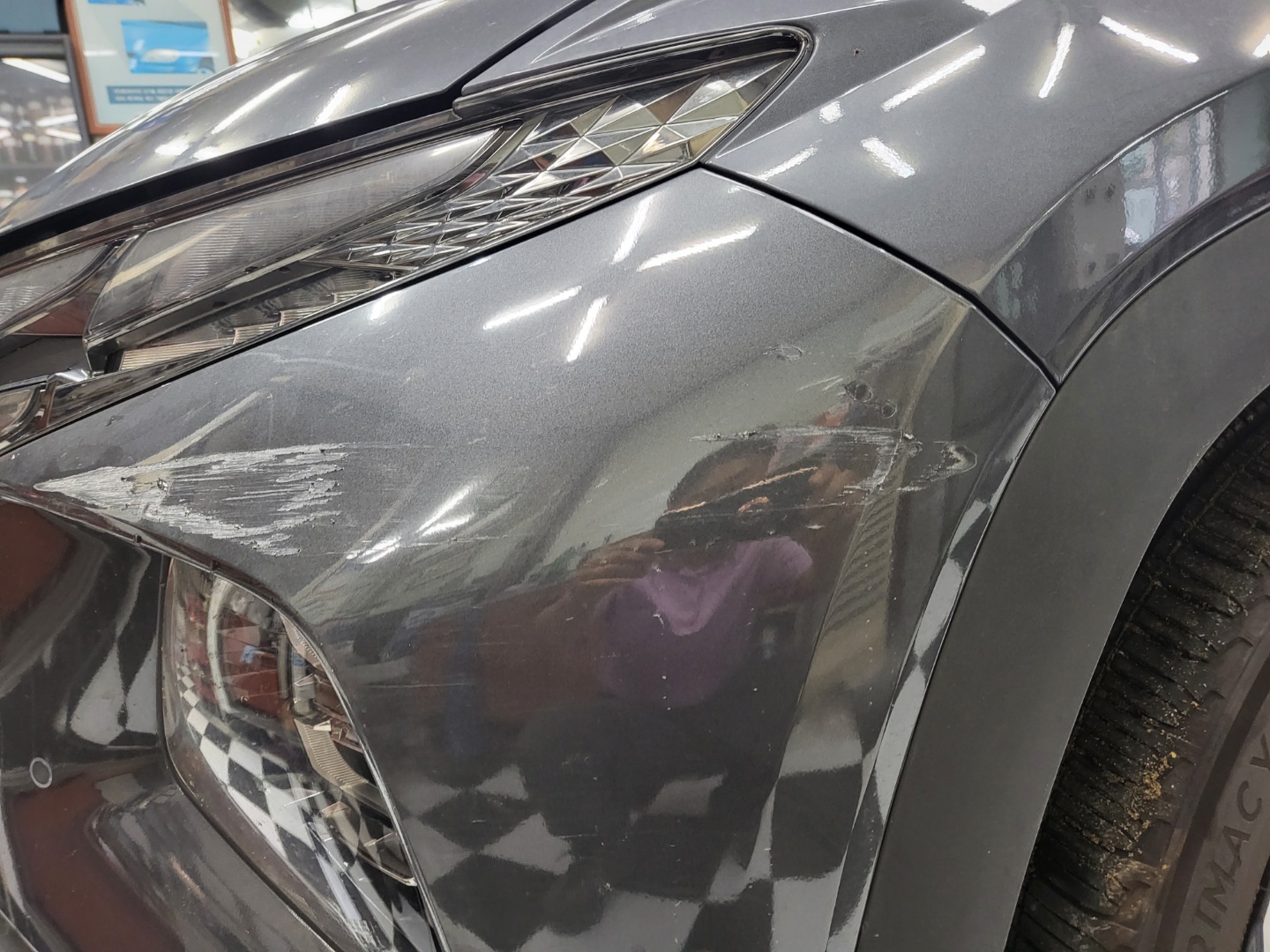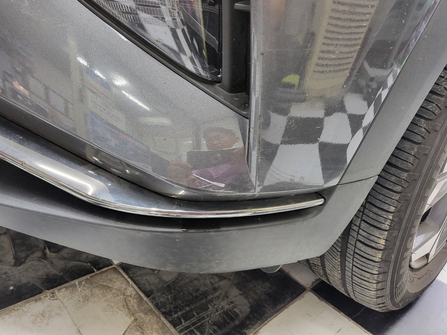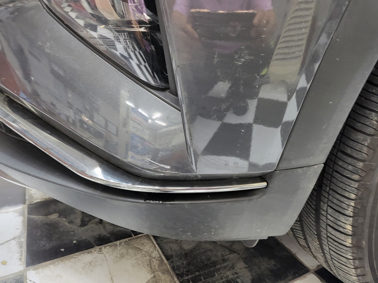 운전석 앞범퍼에 흠집이 생겨