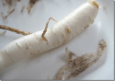 참고로 국산 도라지는 길이가 짧고 가늘면서 잔 뿌리가 많이 달려 있다고 해요.