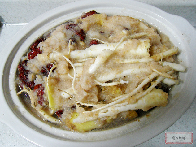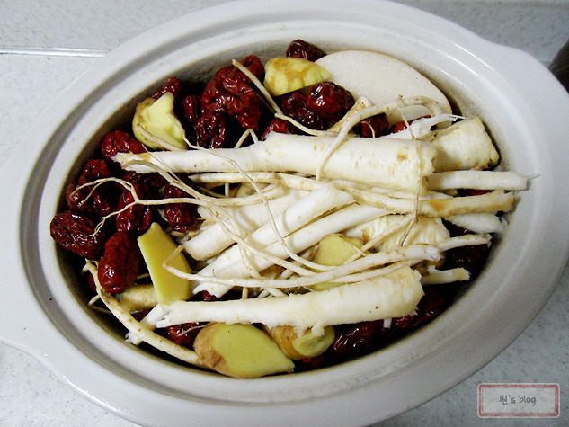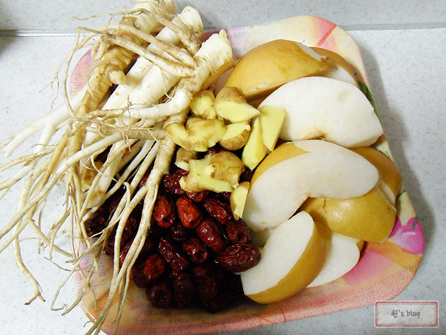 생강의 양은 팍 줄이고 대추와 배의 양을 늘렸어요.