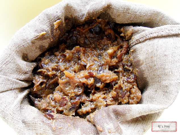그리고 체에 걸러내고 남은 찌꺼기들은 베보자기나 면보에 넣어