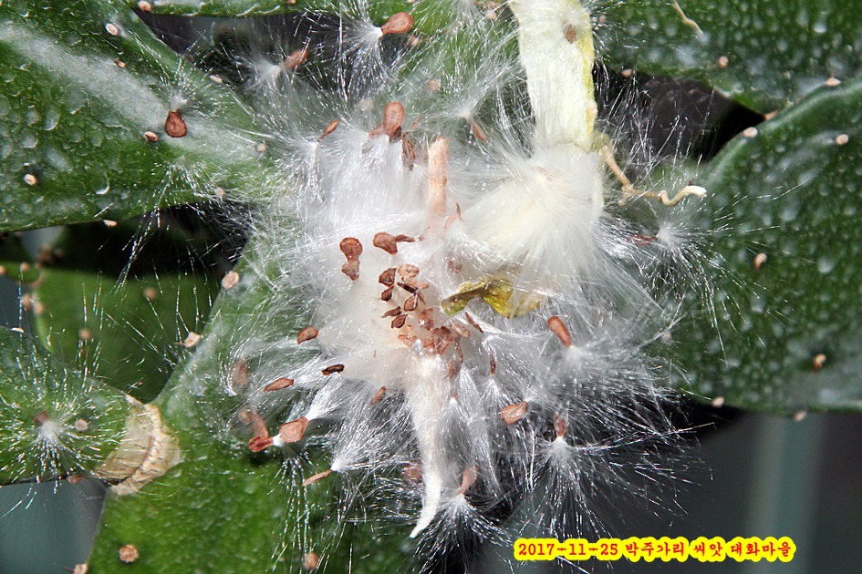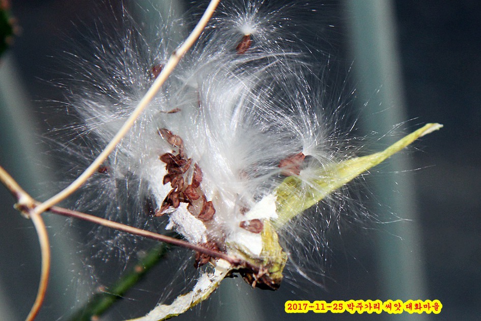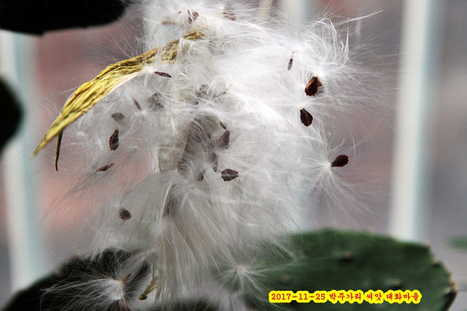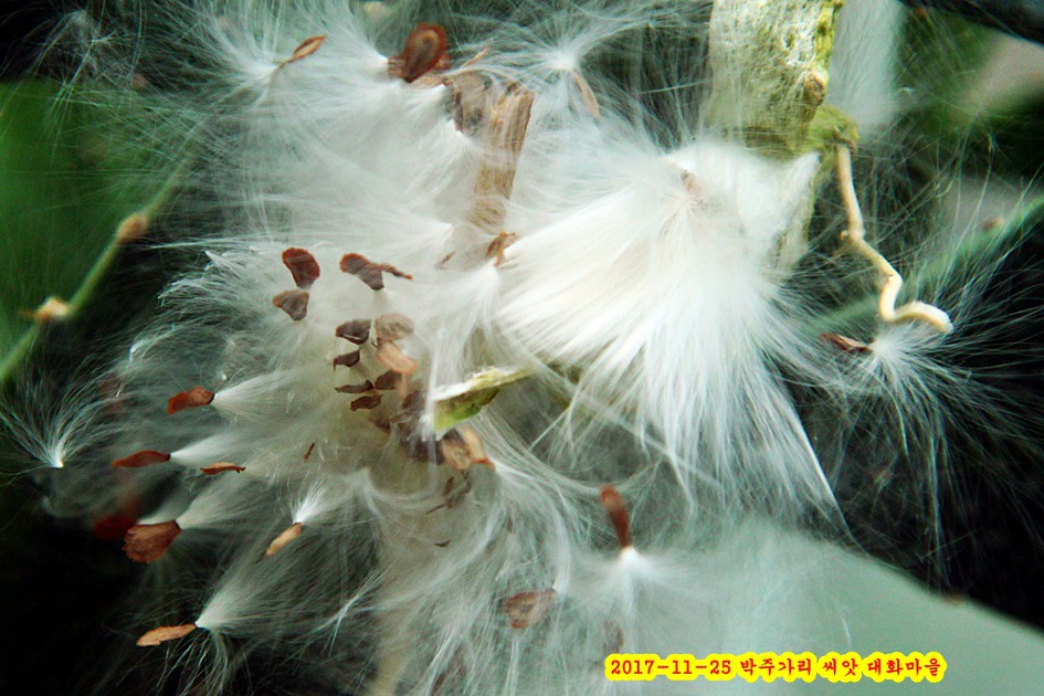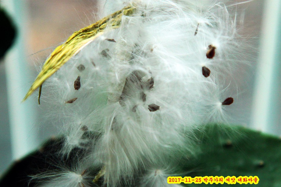 씨앗은 열매가 완전히 익으면 껍질이 벌어져 솜털이 많이 붙어서 아주 가볍게 바람에 날려 다닙니다.