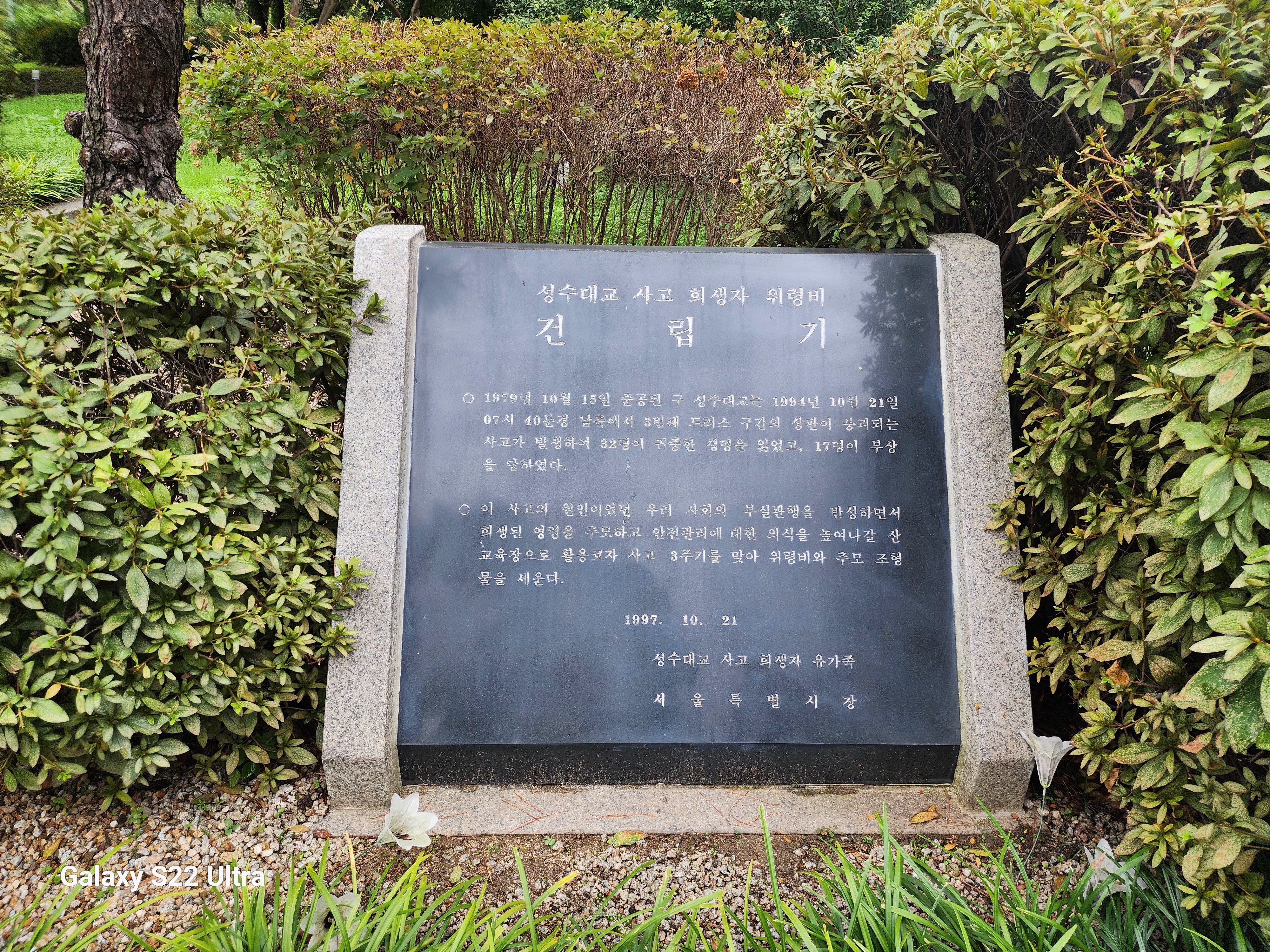 32명이 숨진 성수대교 붕괴 사고 추모를위해 위령탑 참배로 희생자들을 기리는 날..(무학여고 학생 8명이 희생)