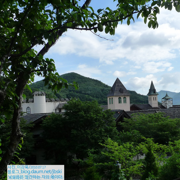 티롤호텔 주자장에서 바라본 카니발 상가는 동화속에서나 나올법한 건축물과 숲이 멋지게 조화를 이루네요