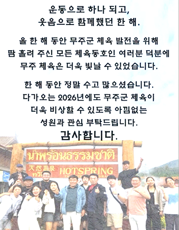 [2025년]2025 무주군체육상시상식 '체육인의밤' 동영상 작성자고목나무|작성시간25.12.16|조회수32 목록 댓글 0 글자크기 작게가 글자크기 크게가 2025년 무주군체육상 시상식, 체육인의 밤 일시 : 2025년 12월 16일(화)장소 : 무주예체문화관 1층 대강당 다음검색 현재 게시글 추가 기능 열기 북마크 공유하기 신고 센터로 신고 댓글 댓글 0 댓글쓰기 댓글 리스트