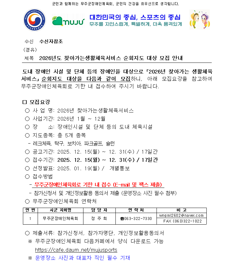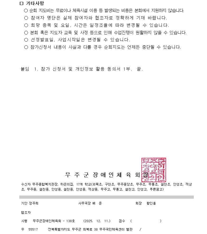 무주군장애인체육회에서