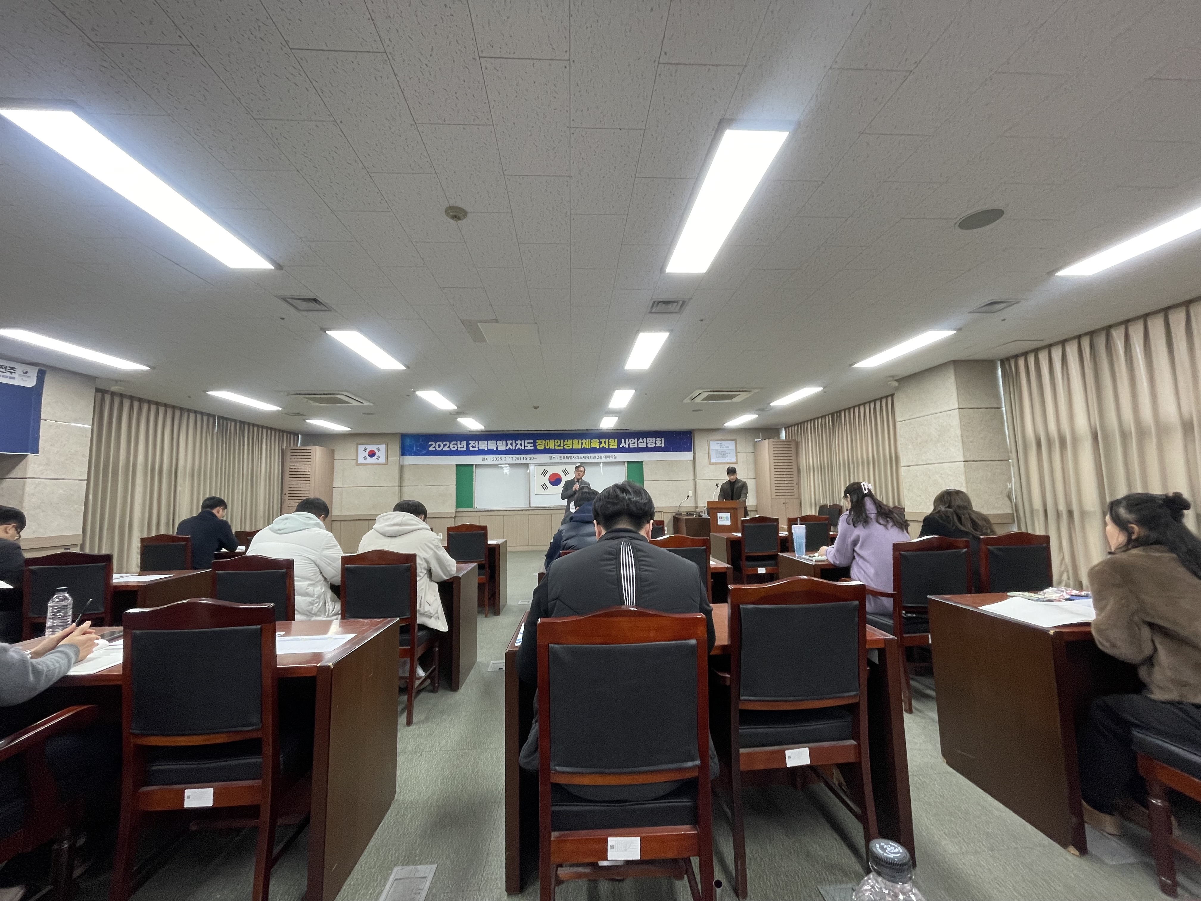 2026년 전북특별자치도 장애인생활체육지원 사업설명회 작성자쭈리|작성시간26.03.27|조회수4 목록 댓글 0 글자크기 작게가 글자크기 크게가 [2026년 전북특별자치도 장애인생활체육지원 사업설명회] 일시 : 2026년 2월12일(목) 15:30장소 : 전북특별자치도체육회관 2층 대회의실 다음검색 현재 게시글 추가 기능 열기 북마크 공유하기 신고 센터로 신고 댓글 댓글 0 댓글쓰기 답글쓰기 댓글 리스트