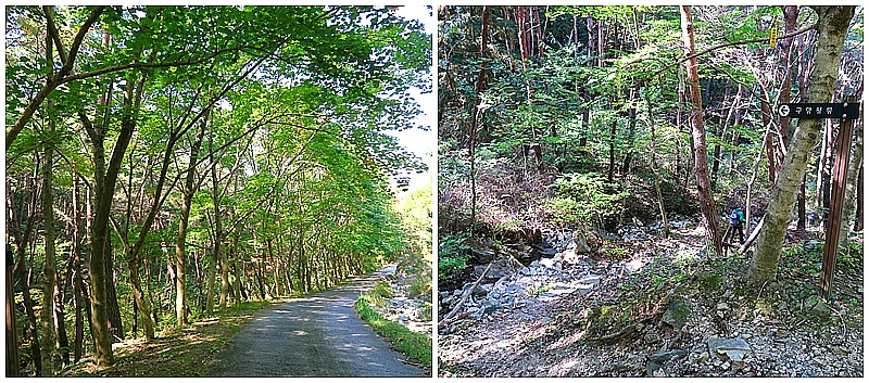 ▼류의태 약수터 가는길과 망바위로 가는 삼거리