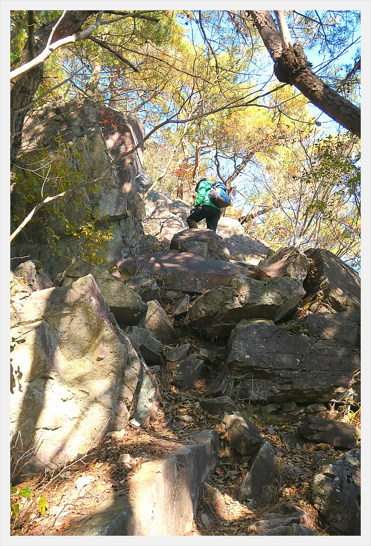 ▼어렵게 이정목을 찿아 가파른 길을 오른다.