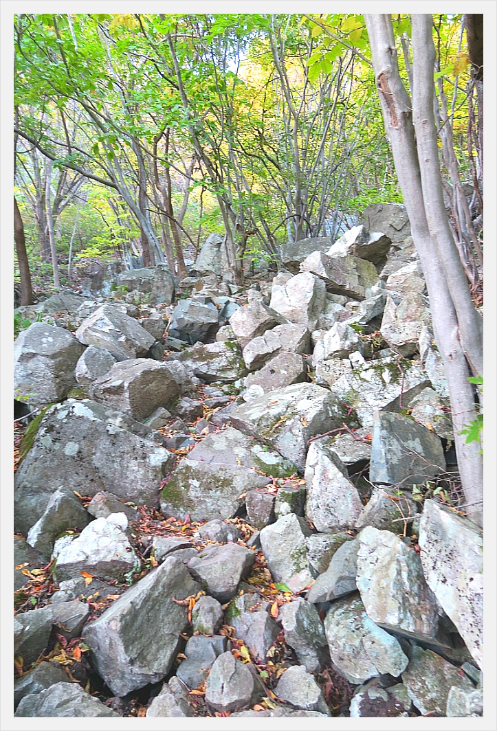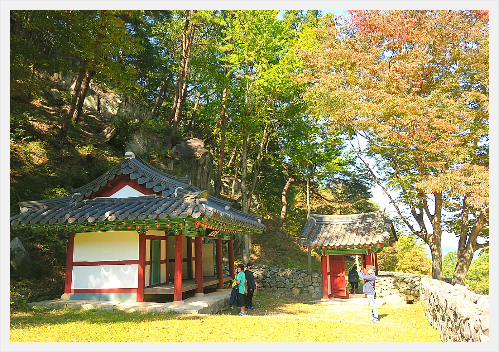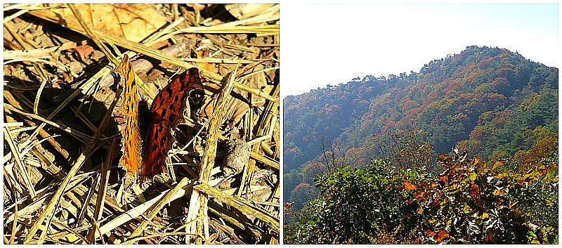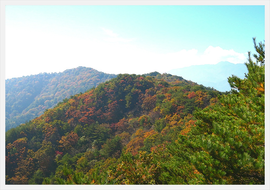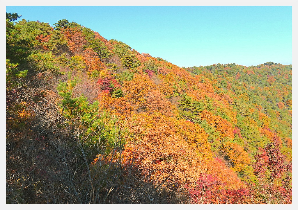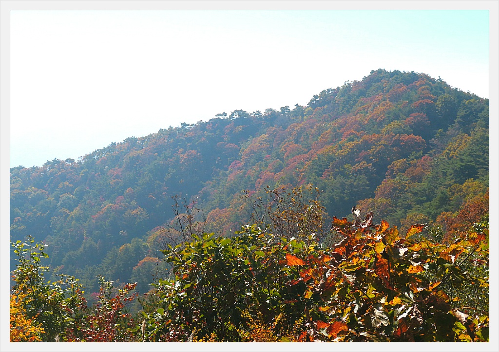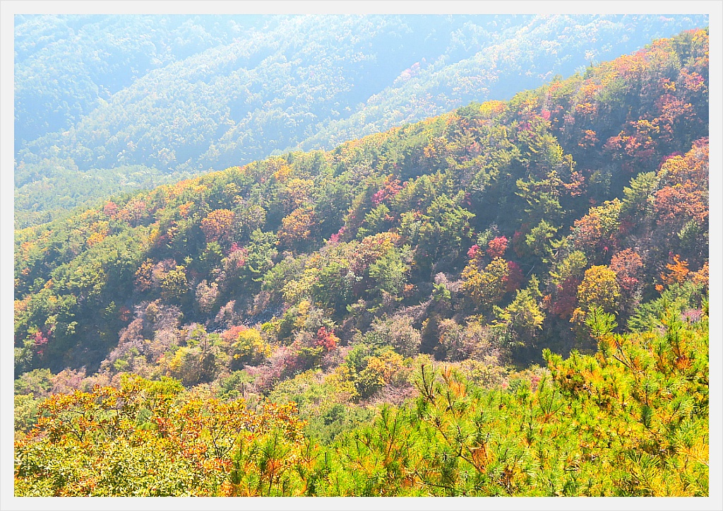 ▼산 위쪽은 단풍이 곱게 물들어 가고, 가을색이 곱다.