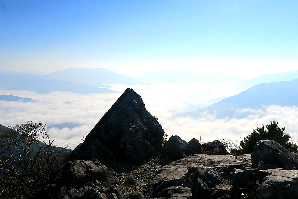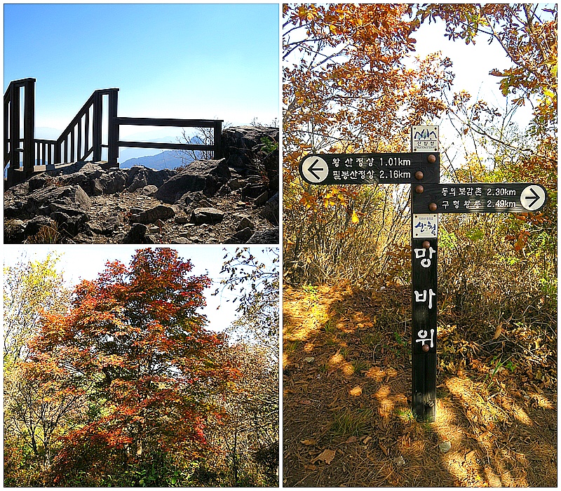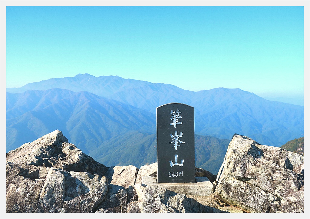 필봉산(848m) 정상은 온통 바위투성이로서 사방이 날카로운 벼랑이며