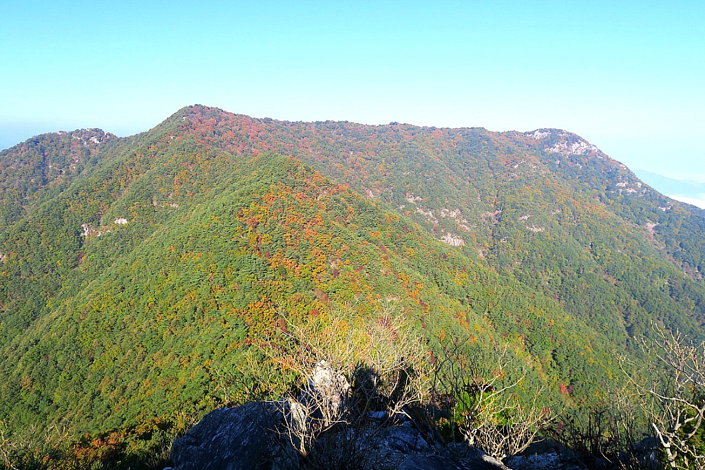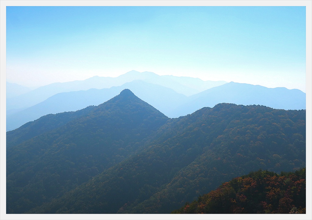 ▼지나온 필봉산, 뒤로 멀리 산청군 단성면 웅석봉