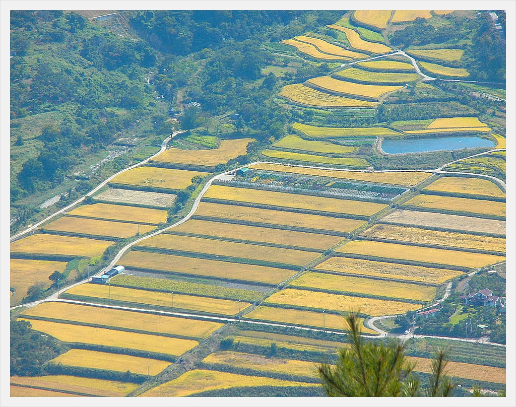 ▼수확의 계절이라 노란색 벼들이 파란색과 어루러져 그림을 만들어준다.
