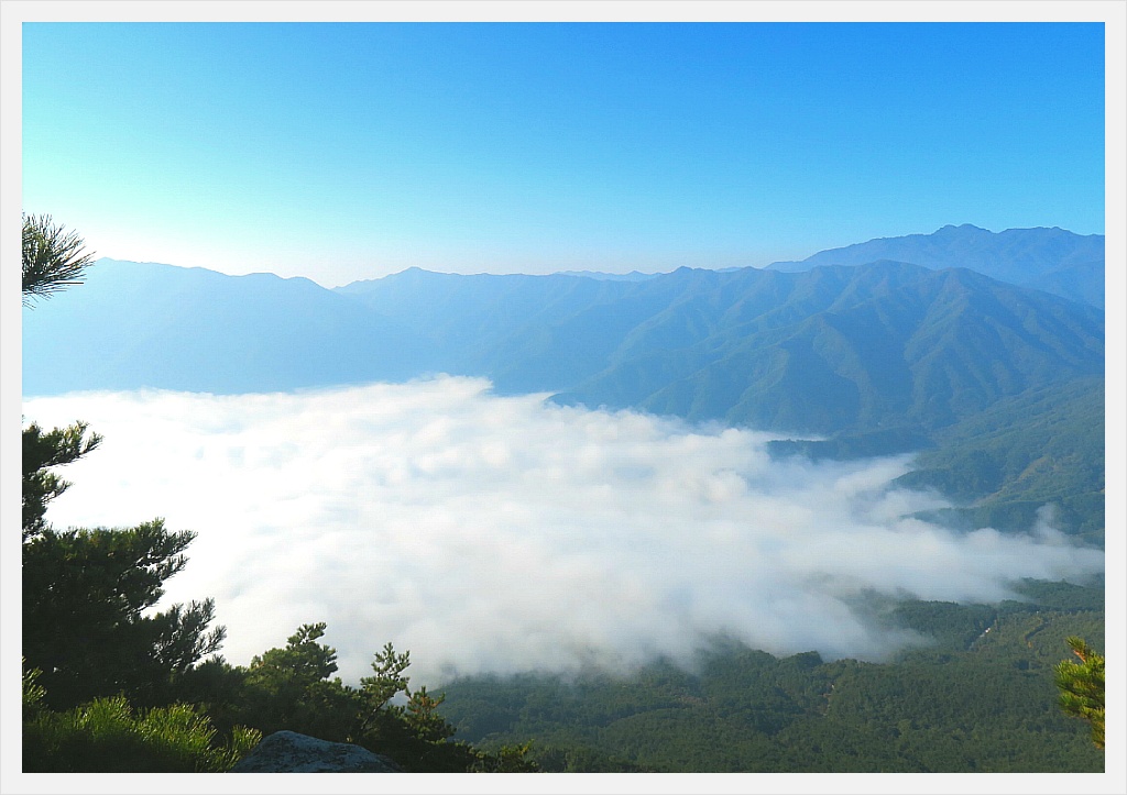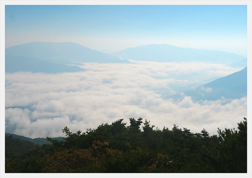 ▼목화솜 같은 구름을 머리위에 이고 있는 지리산 라인