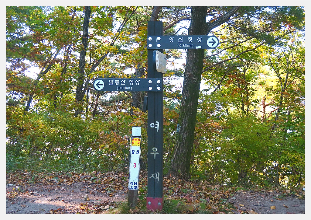 ▼다시 여우재로 내려와서, 산악회 시그널이 제법 보이고...
