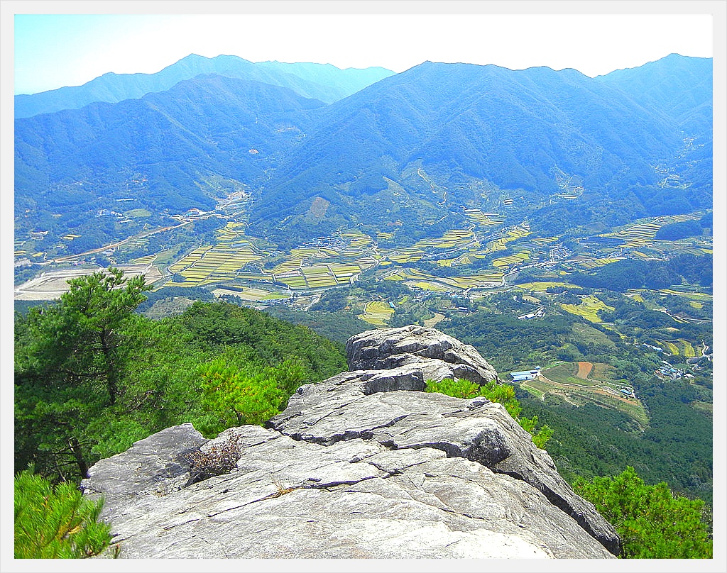 ▼수철리 다랭이 논,필봉산 아래 등바위 전망암에서..