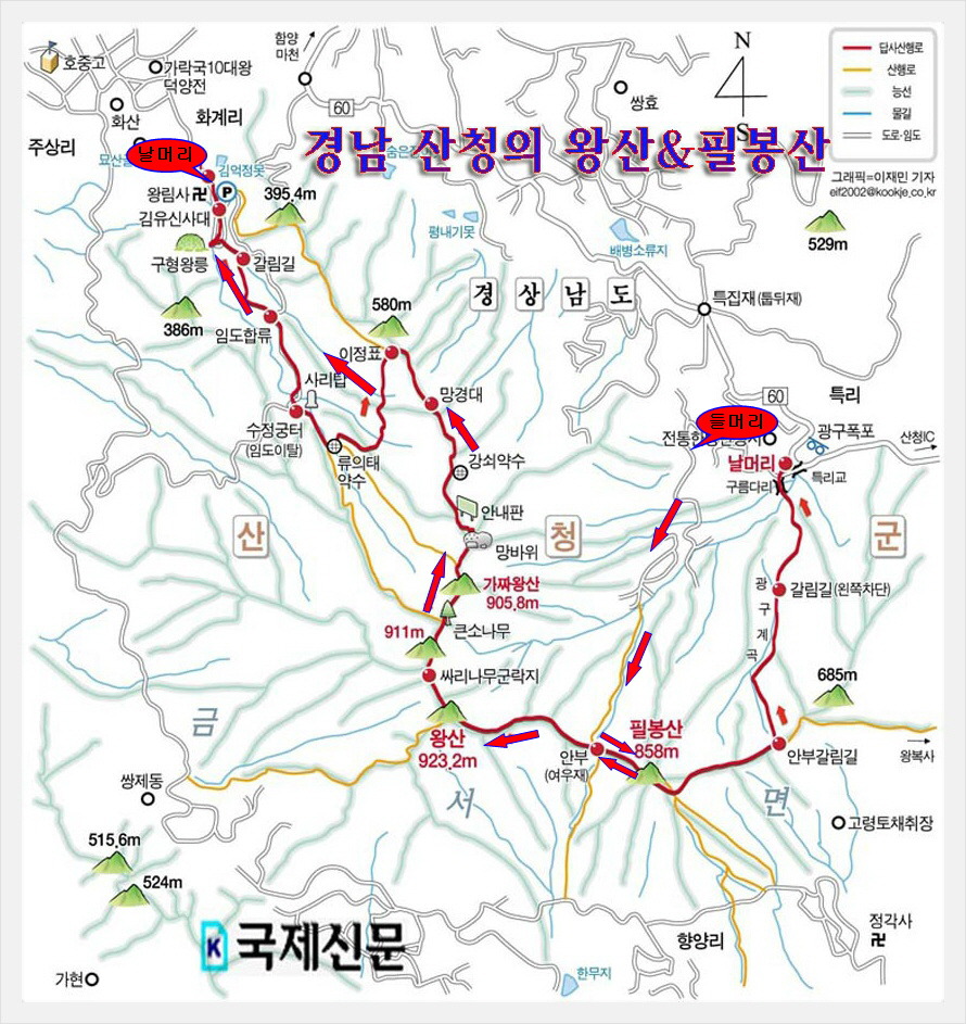 어디를:경상남도 산청군 금서면 왕산&필봉산