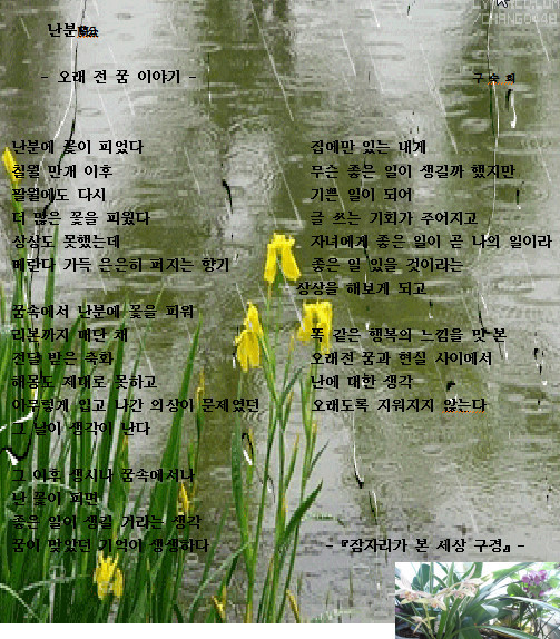잠자리가 본 세상구경(문장21출판,2015년} / 난분-오래전 꿈 이야기-/ 구재원/ P.20 작성자프리텐|작성시간17.04.14|조회수28 목록 댓글 0 글자크기 작게가 글자크기 크게가 다음검색 현재 게시글 추가 기능 열기 북마크 공유하기 신고 센터로 신고 댓글 댓글 0 댓글쓰기 답글쓰기 댓글 리스트