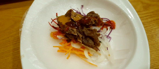 홍삼 한방스끼야끼 샤브는 이 연한 쌍화탕 냄새가 풍기는 육수에 배추, 치커리, 청경채, 황금팽이, 만가닥버섯과 슬라이스 친 소고기를 살짝 데쳐 고추냉이 소스를 묻힌 다음 계란 물에 찍어 먹는 요리다. 계란 날 비린내가 날 것 같지만 먹어보면 잡 내가 없고 구수하고 달큰하다. 홍삼 향이 은은하게 나면서 잡냄새도 없고 부드럽다. 정말 차별화된 보약 맛이다. 튀기거나 다른 것을 가미하지 않은 채소들을 자연그대로 풍부하게 맛볼 수 있다는 것도 커다란 매력이다. 소고기와 채소를 다 건져 먹고 100% 고구마 당면과 밥을 볶아 먹는 맛도 별미다.