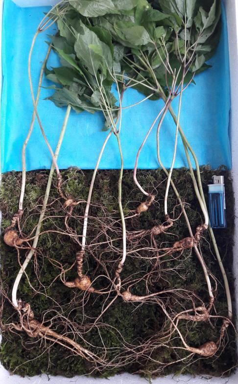 (화순=연합뉴스) 김재선 기자 = 전남 화순군 모후산 자락에서 양각삼 10뿌리가 발견돼 화제다. 양각삼은 6세기 중국 남북조 시대 도홍경이 신농본초경집주에 '화순 동복삼은 뿌리가 둥근 동자삼 형태로 양의 뿔을 닮았다'고 기술한 데서 유래한 이름이다.