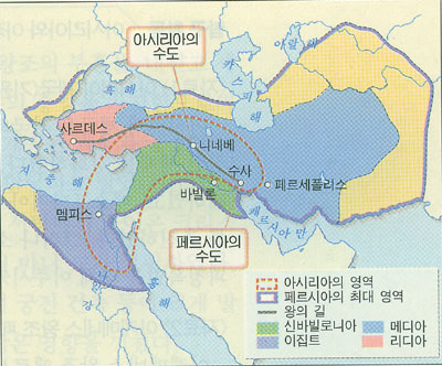 오리엔트를 최초로 통일한 앗시리아(BC 8세기경) 영역.