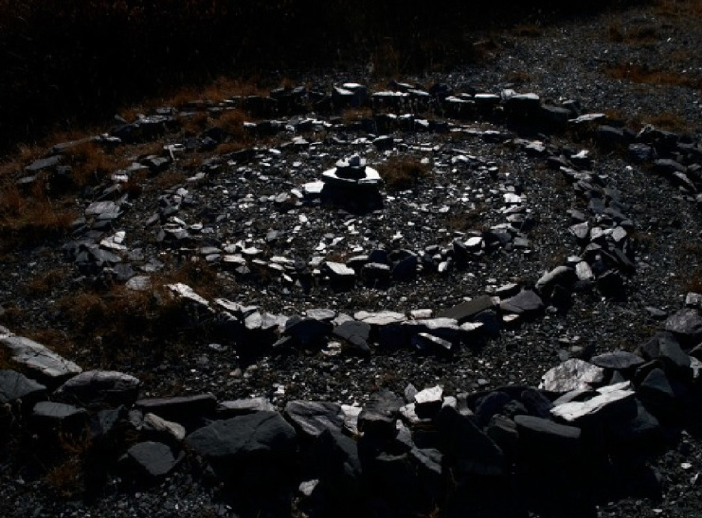 백두산[白頭山] 기슭의 제단[祭壇], 중앙[中央]의 원단[圓壇]을 중심[中心]으로, 3개[三個]의 작은 원단[圓壇]을 사방[四方]으로 배치하고 있다.
