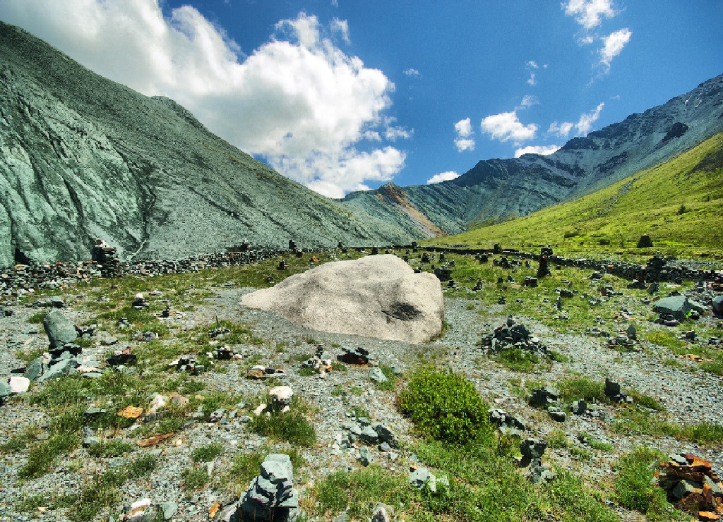 불함산[不咸山]인 벨루하산의 곳곳에는 고대[古代] 장승[張丞]의 기원[起源]이 되는 유물[遺物]들이 즐비하다.