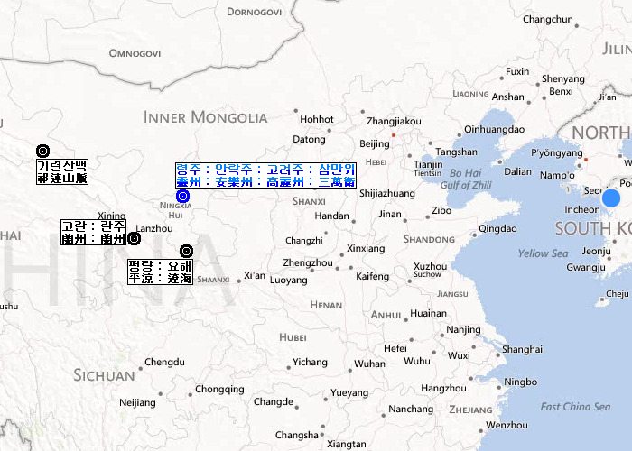 ▷ 회주(會州)는 평량(平涼)의 회녕진(會寧鎮)으로 두는 곳이므로, 그 평량(平涼)은 현 녕하성(寧夏省) 남변에 실존하는 지명인데..