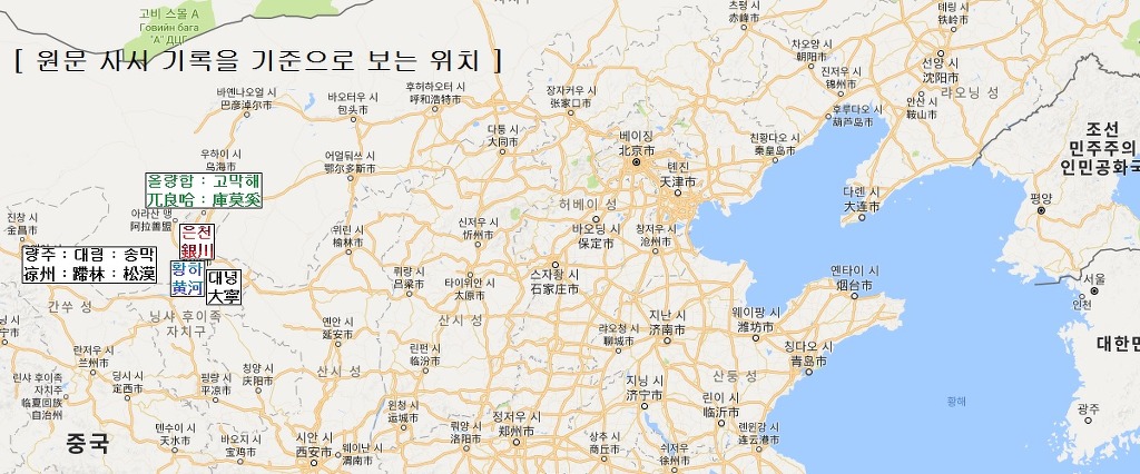※ 현재 녕하성(寧夏省) 북부의 은천(銀川) 남쪽에 흐르는 황하(黃河)에서 동남쪽으로 내려가면 대녕(大寧)이 위치한다고 했습니다.