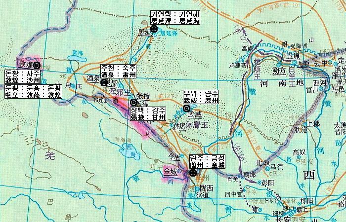 앞서 말한바 그대로 현 청해성(靑海省)의 토곡혼(吐谷渾) 영역과 겹쳐져 있는 곳은 현 감숙성(甘肅省) 서북부 지역이었다..