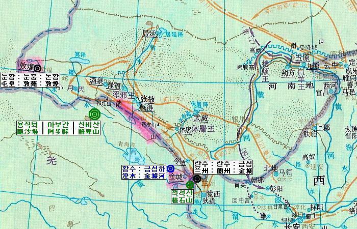 쉽게 수긍할 수 없어서, 다시 새로운 자료를 찾아볼 필요가 있고, 현재 감숙성(甘肅省) 서북부에 위치하는 여러 지명들을 단서로 삼아 추적해 보기로 한다..