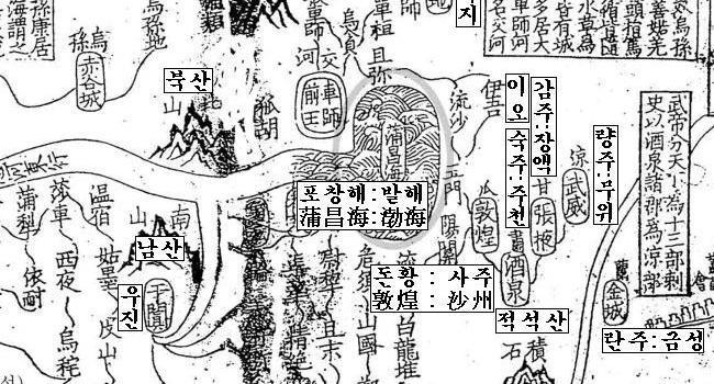 발해(渤海)는 애초부터 현재 한반도(韓半島)의 서북쪽에 위치하는 바다가 아니었고.. 현 감숙성(甘肅省) 서북부의 돈황(敦煌) 구역에 접하는 지명이었다..